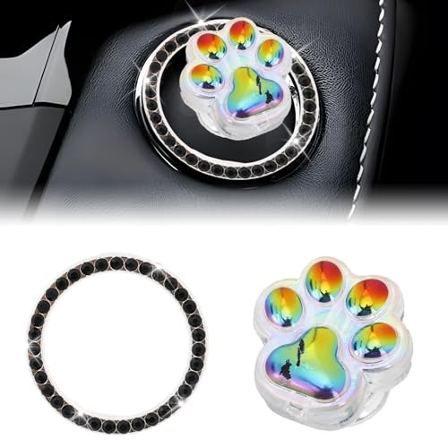 Push to Start Button Cover - Resin Cat Paw Starter Cover Bling Black Paw