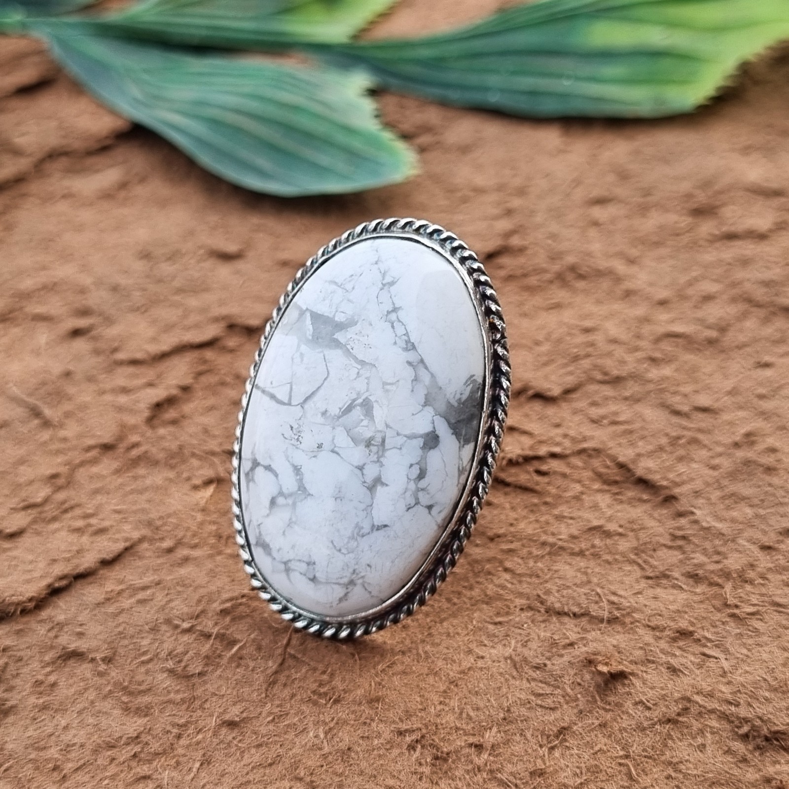 Natural white Howlite Ring 925 Sterling Silver Anniversary Gift Ring PG9318