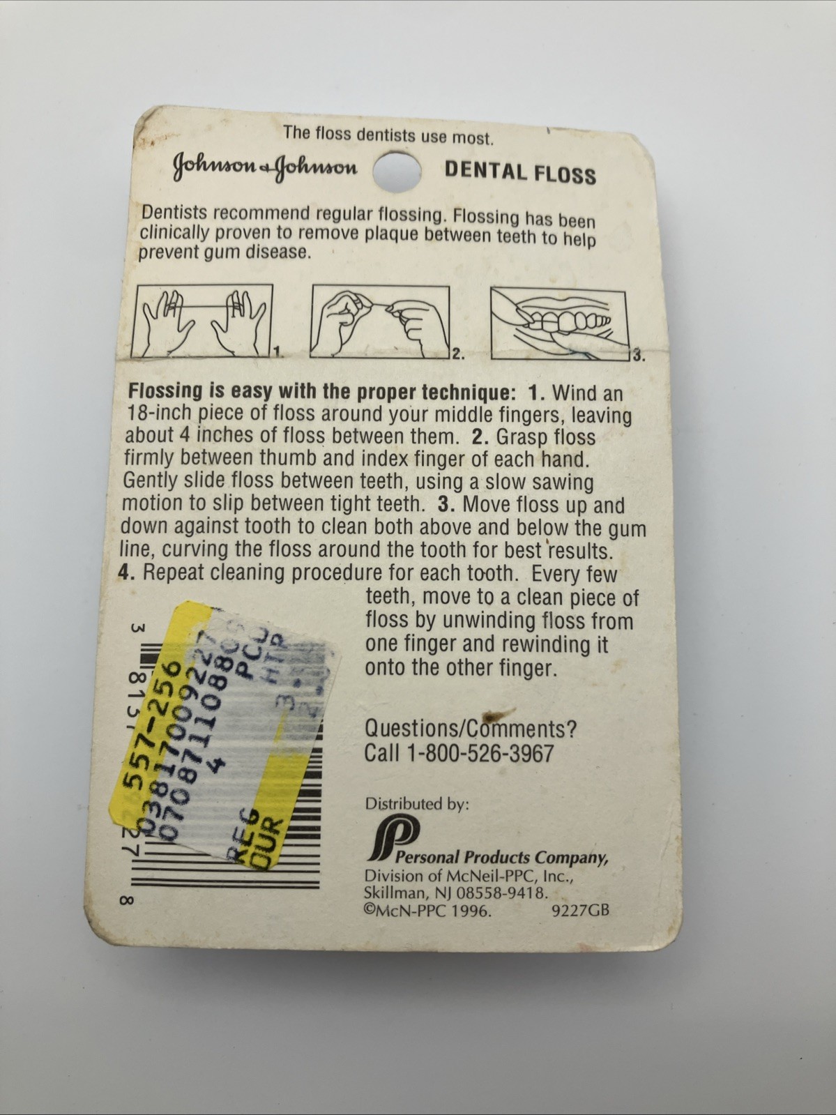 Johnson Johnson Reach Dental Floss Plain Waxed 100 Yd Vtg 1996 Original