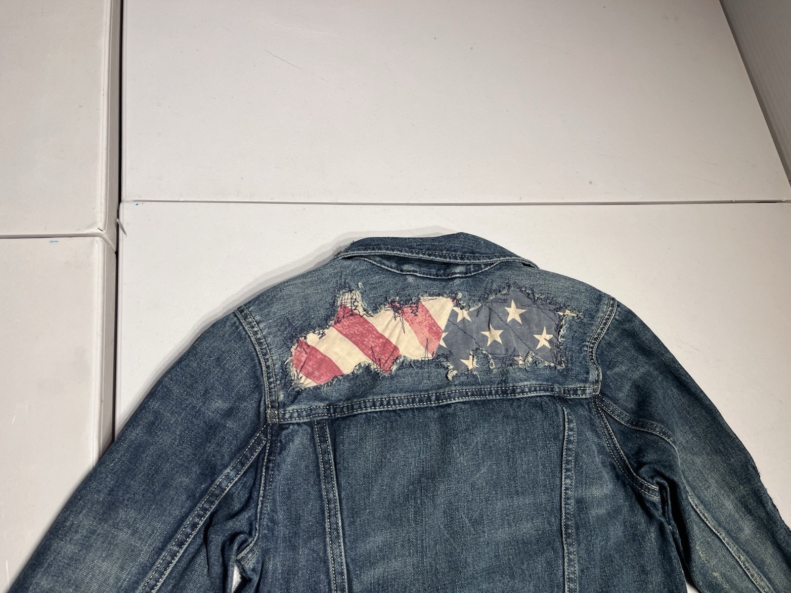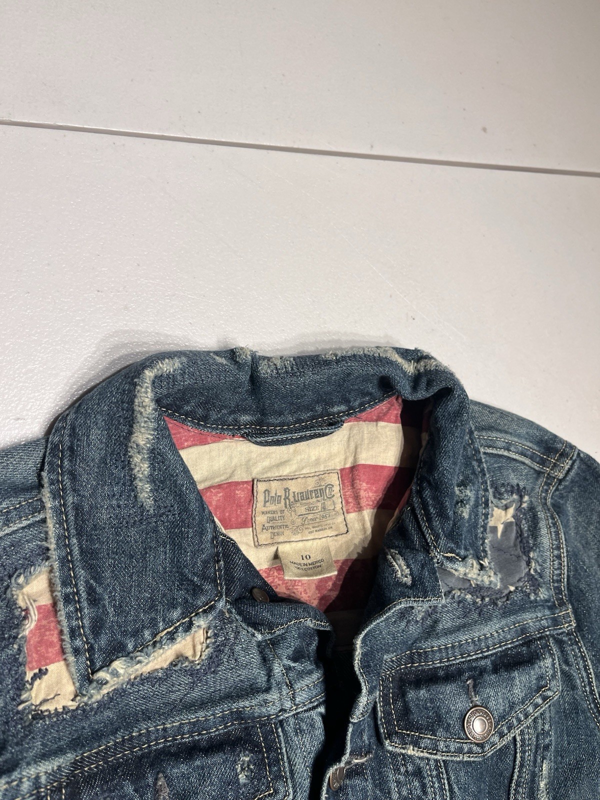 Polo Ralph Lauren Jacket Kids 10 Blue Denim USA Flag Army Distressed Cotton Coat