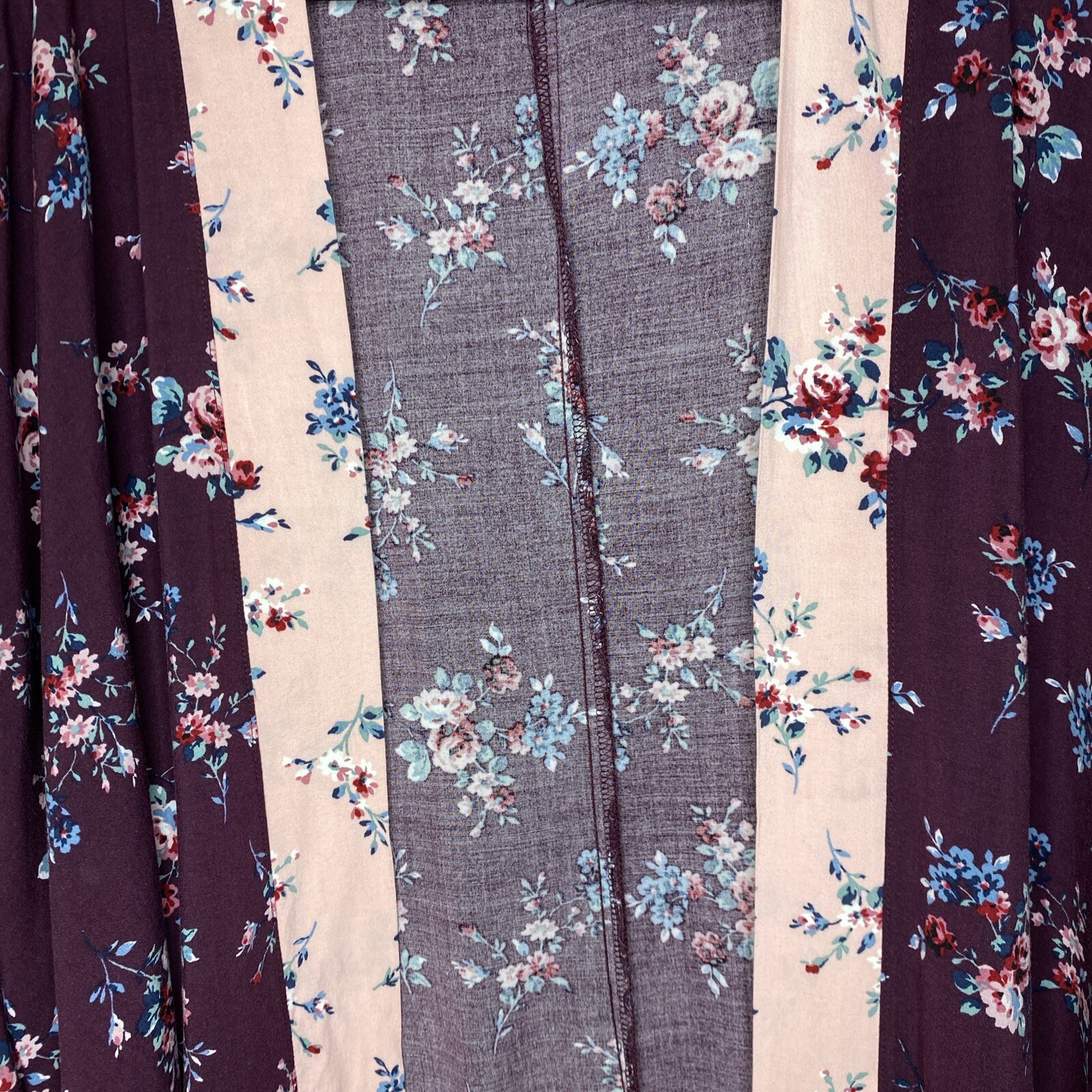 Cottagecore Dark Floral Open Front Cardigan One Size Burgundy Kimono Boho