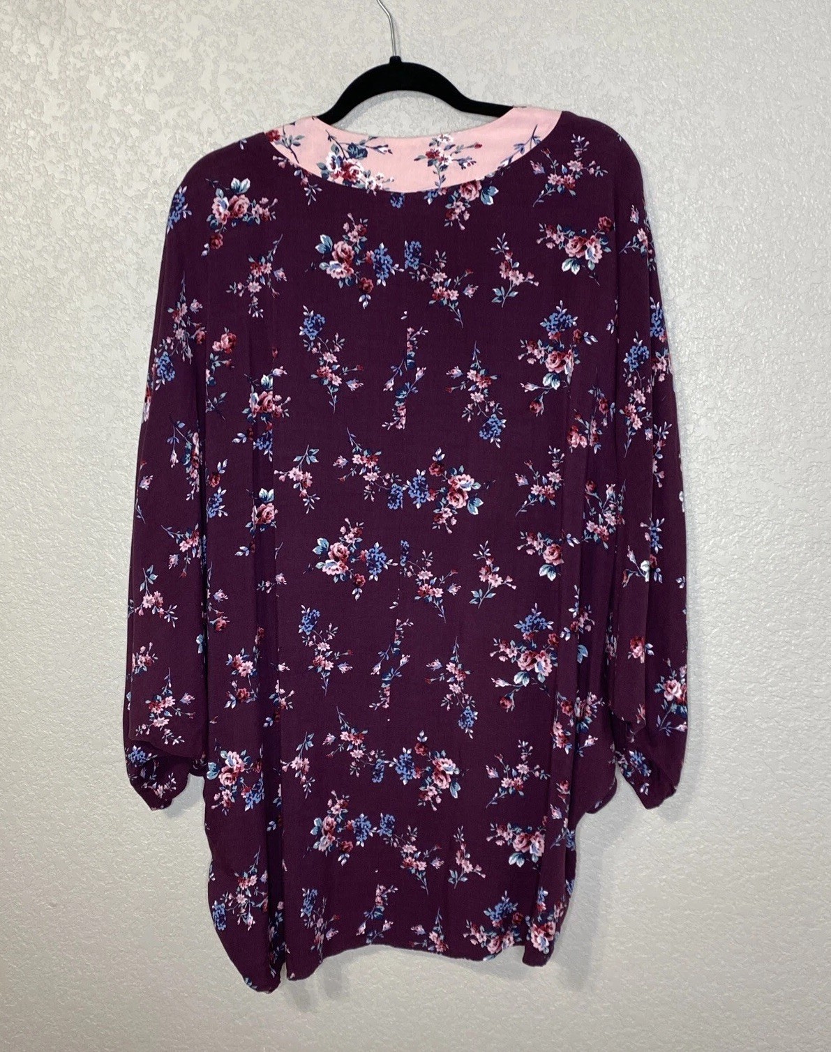 как выглядит Cottagecore Dark Floral Open Front Cardigan One Size Burgundy Kimono Boho фото