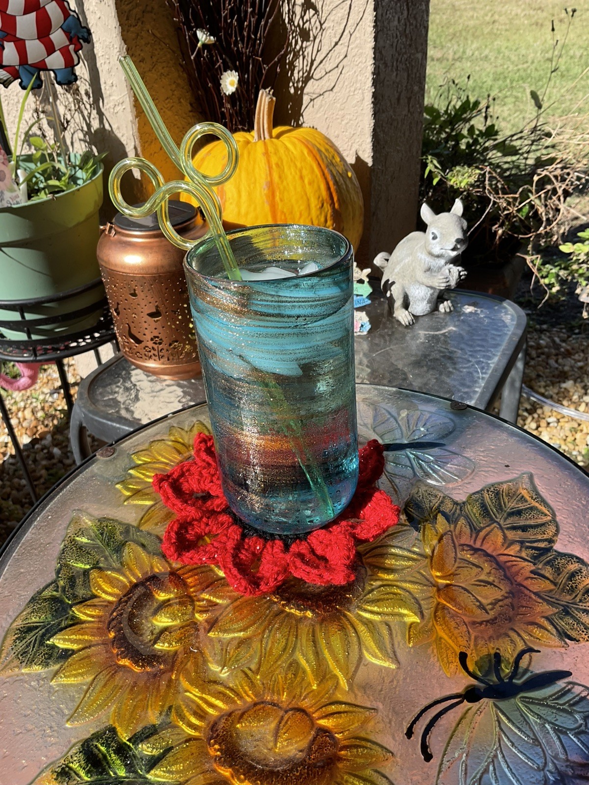 Valentines Handmade Crochet red sunflower drink coasters/trivets set of 3 flower