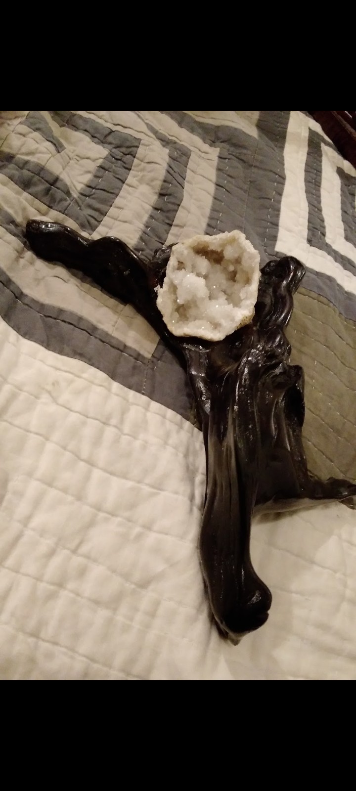 Walnut Driftwood Art Natural Wood With Geode. 10 in by 10 in by 5 in