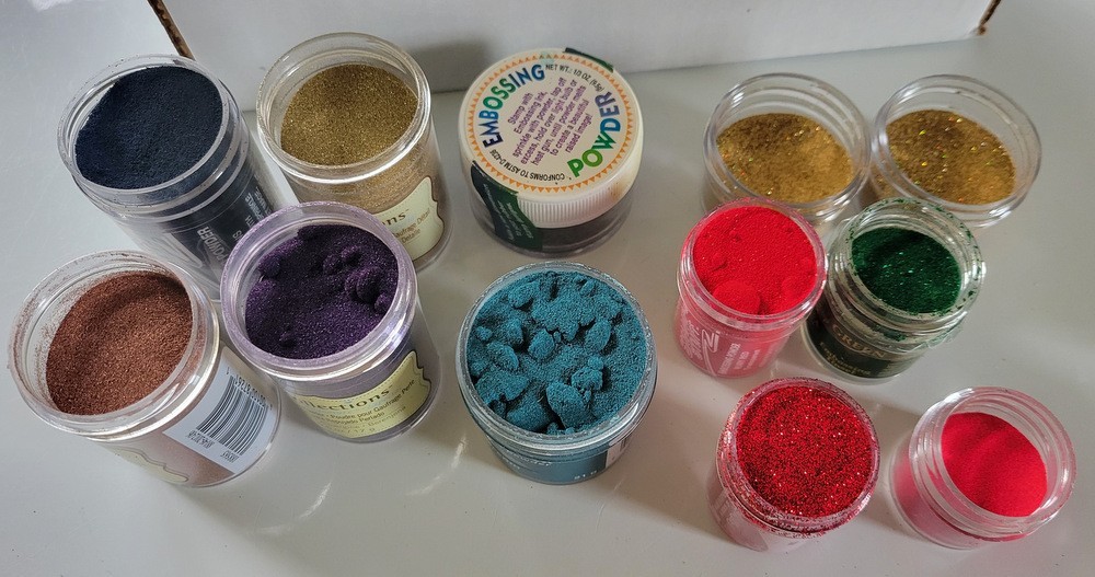 12 Embossing Powder Lot Mostly Full - Mixed Brands/Sizes/Colors - Used 1 New