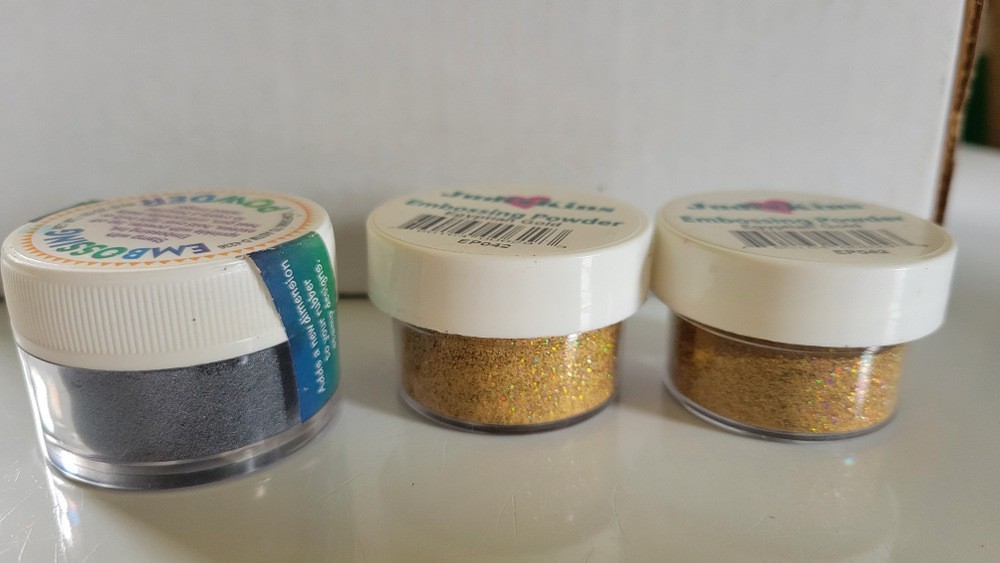 как выглядит 12 Embossing Powder Lot Mostly Full - Mixed Brands/Sizes/Colors - Used 1 New фото