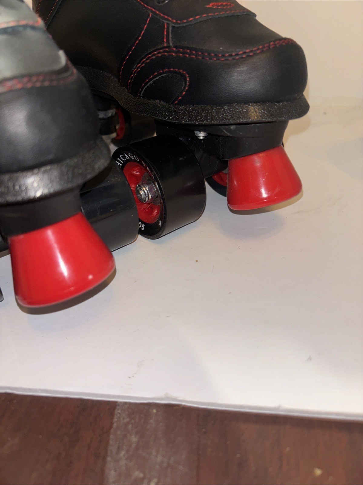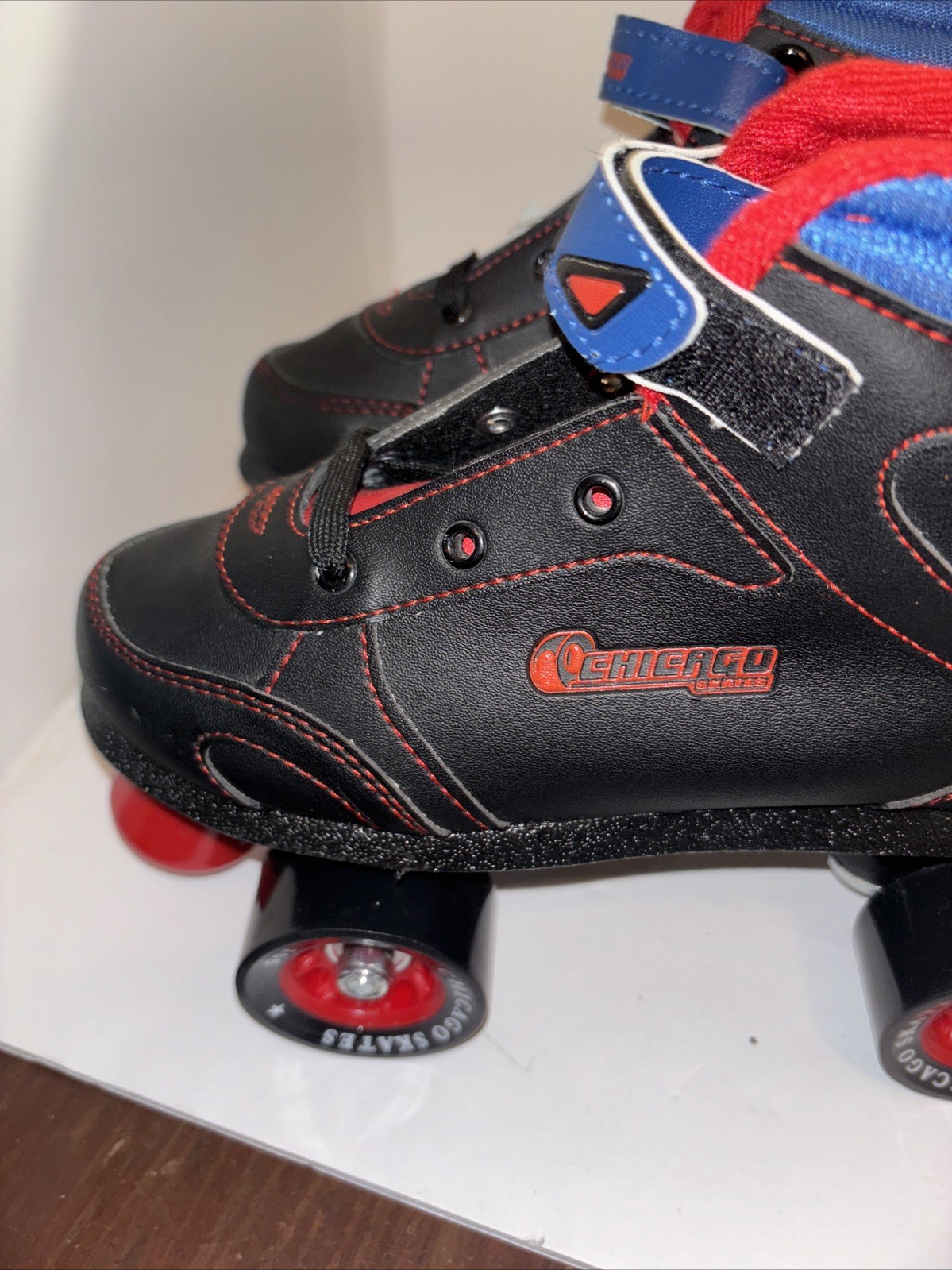 как выглядит Chicago Boys Sidewalk Roller Skates - Quad Black Red Blue 105 Children Size 5 фото