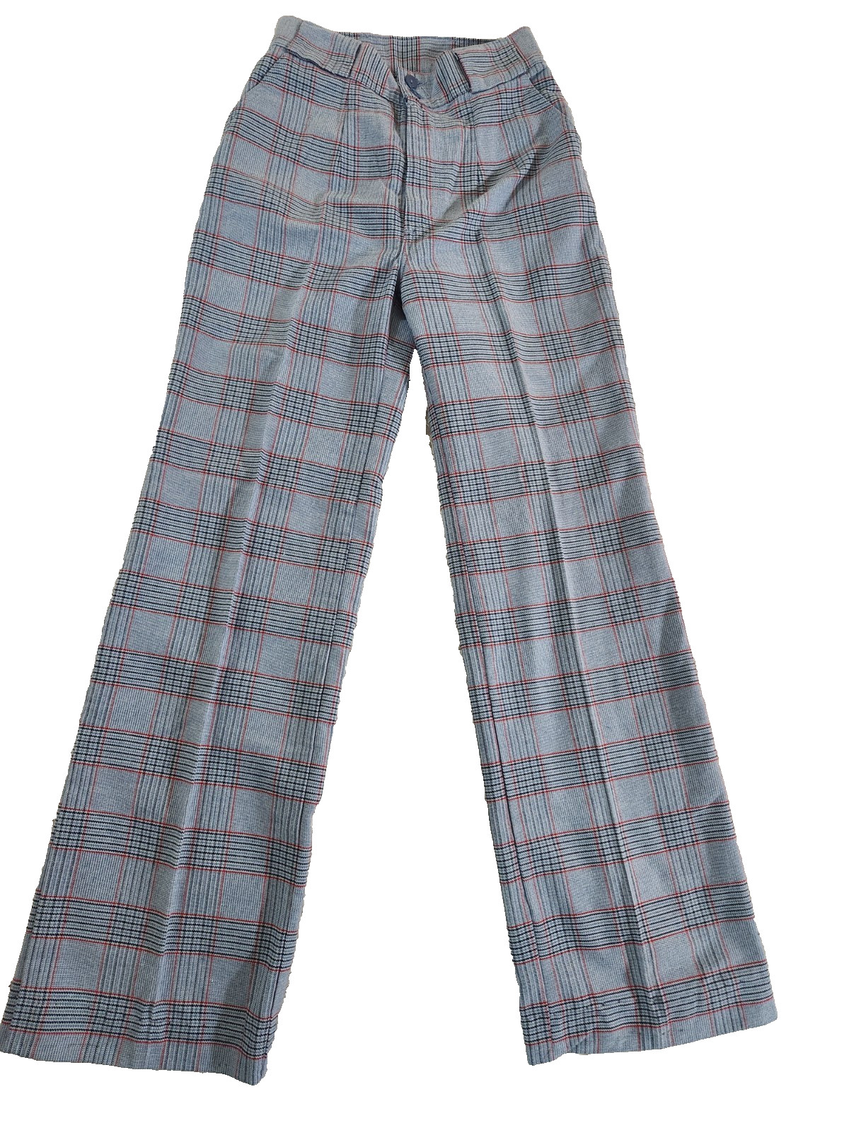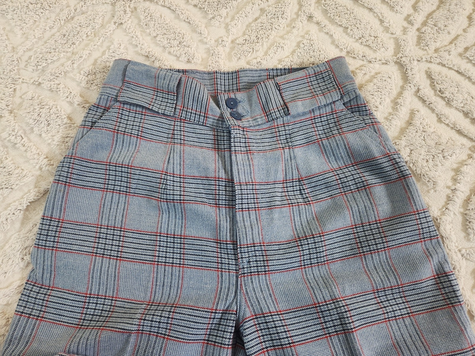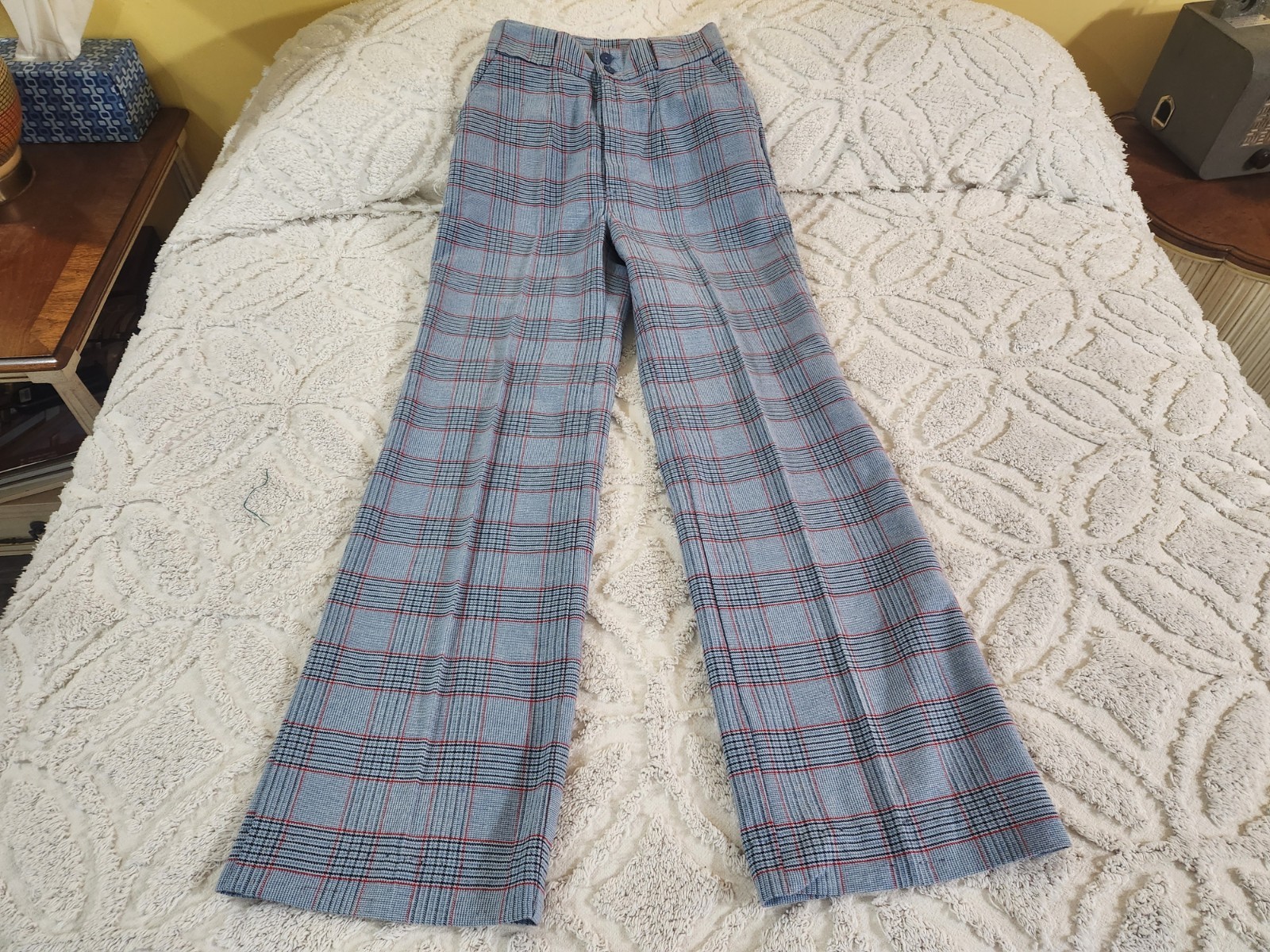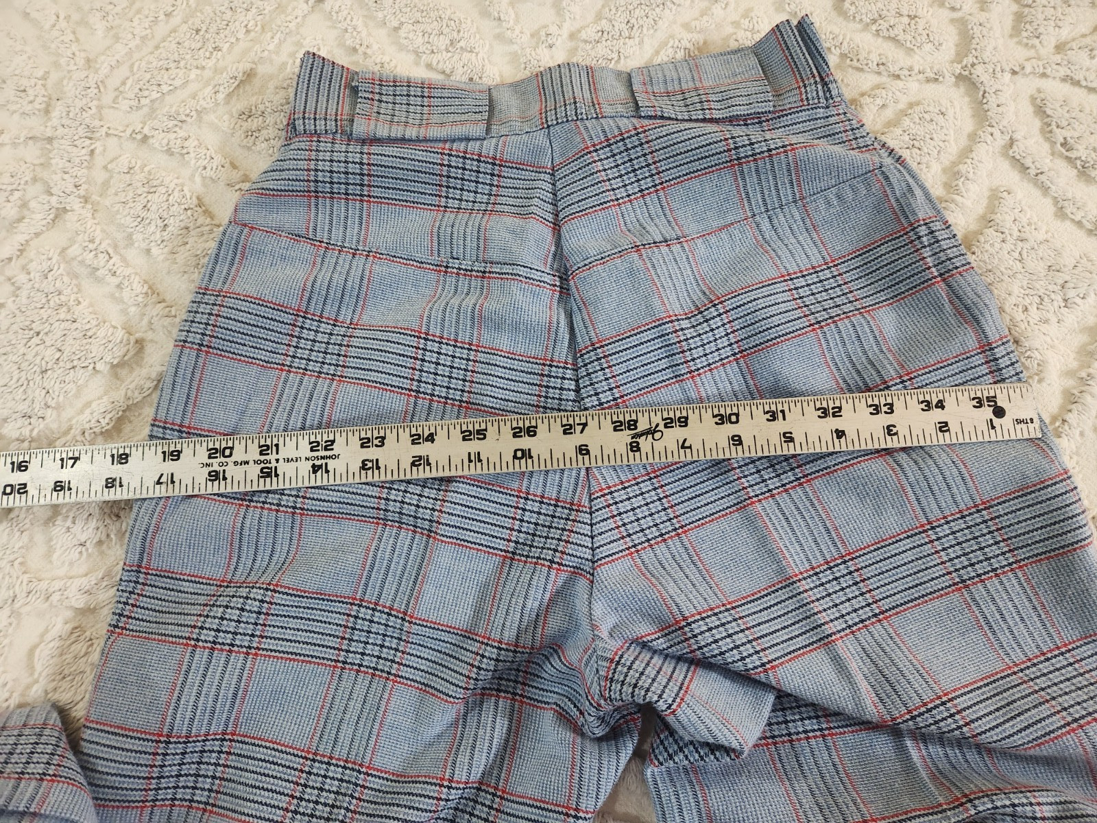 Vintage Levi s Plaid Disco Pants 70 s Cursive L Blue - Bells / Flares 26 /30 1/2