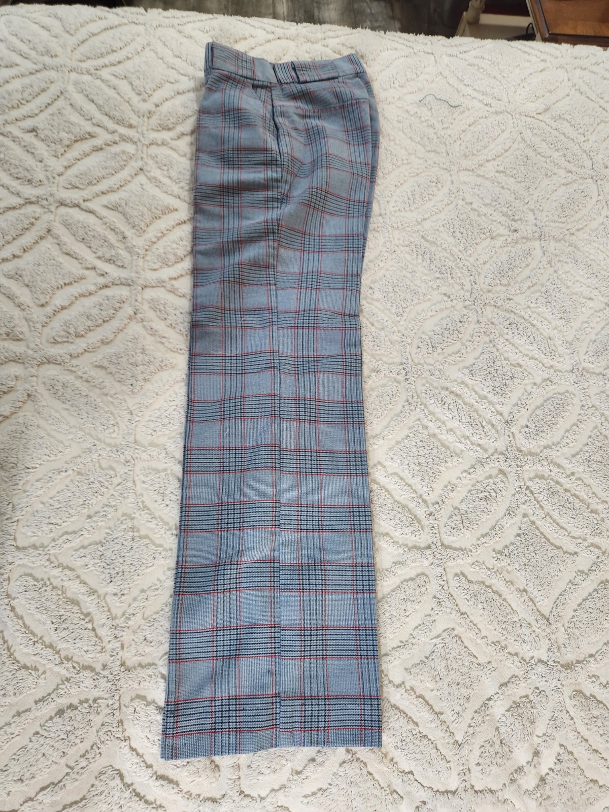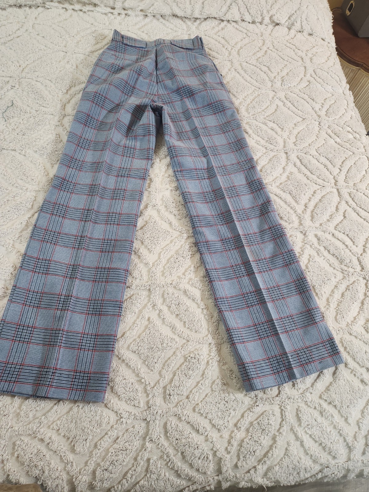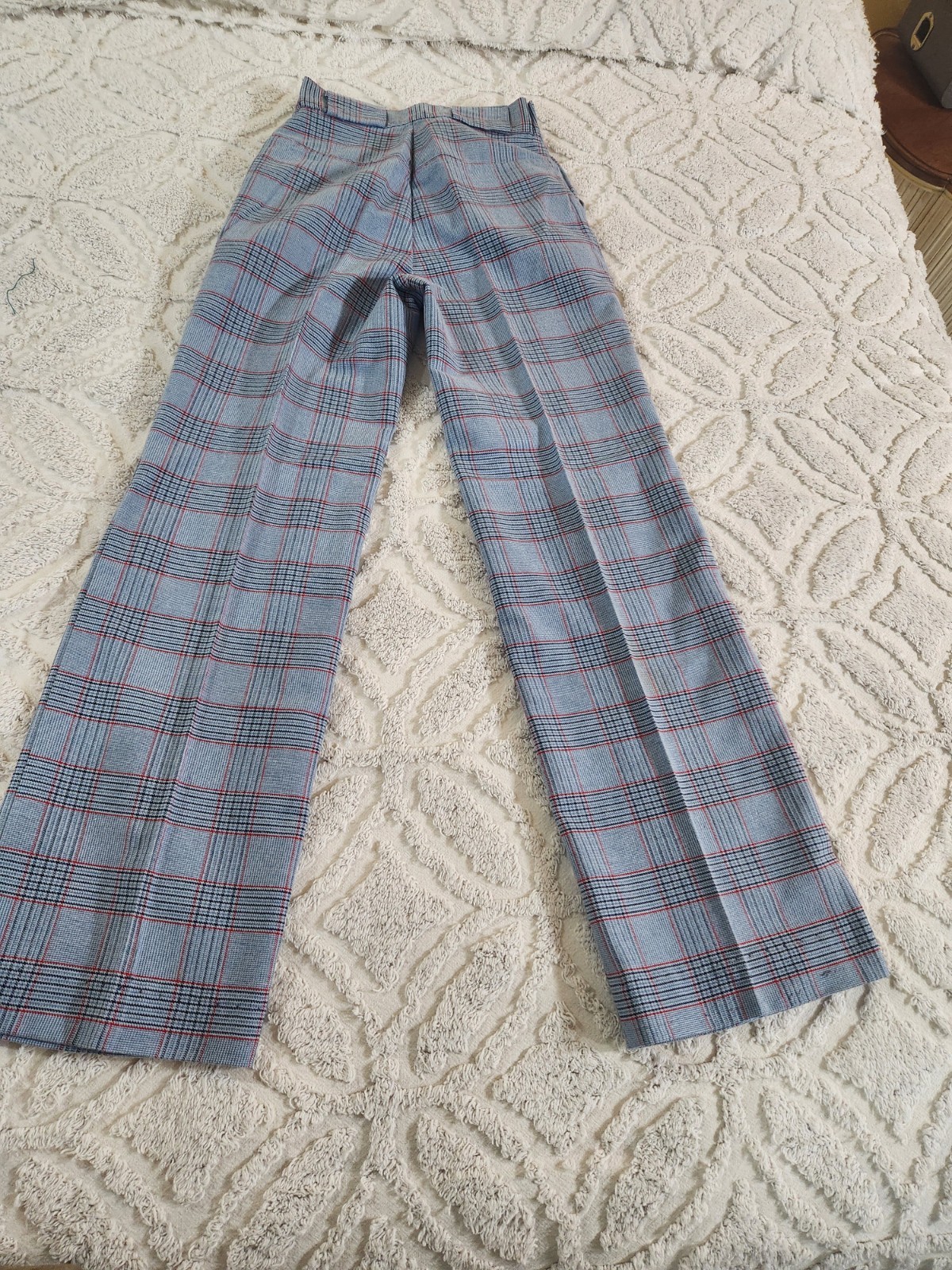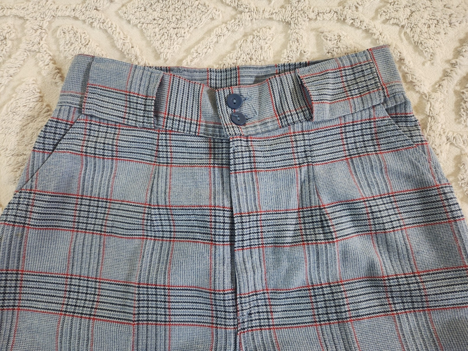 Vintage Levi s Plaid Disco Pants 70 s Cursive L Blue - Bells / Flares 26 /30 1/2