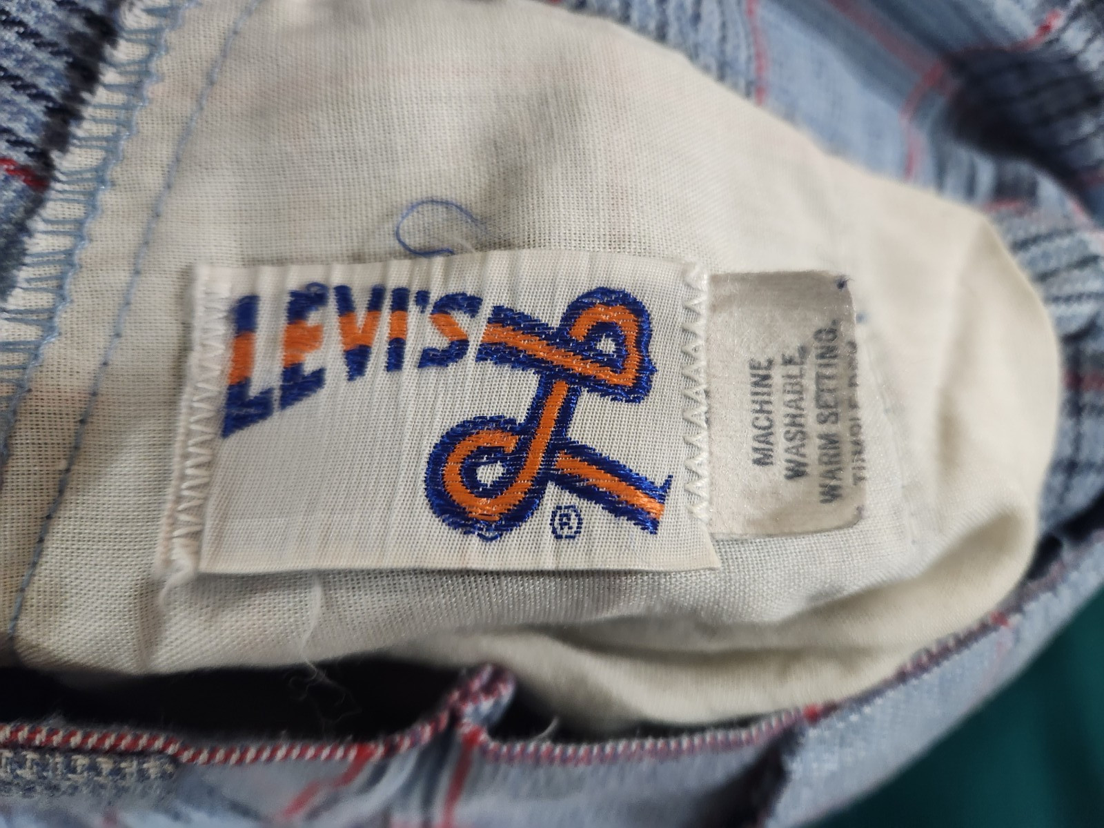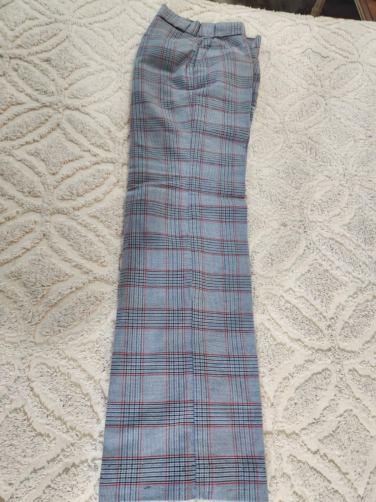 как выглядит Vintage Levi s Plaid Disco Pants 70 s Cursive L Blue - Bells / Flares 26 /30 1/2 фото