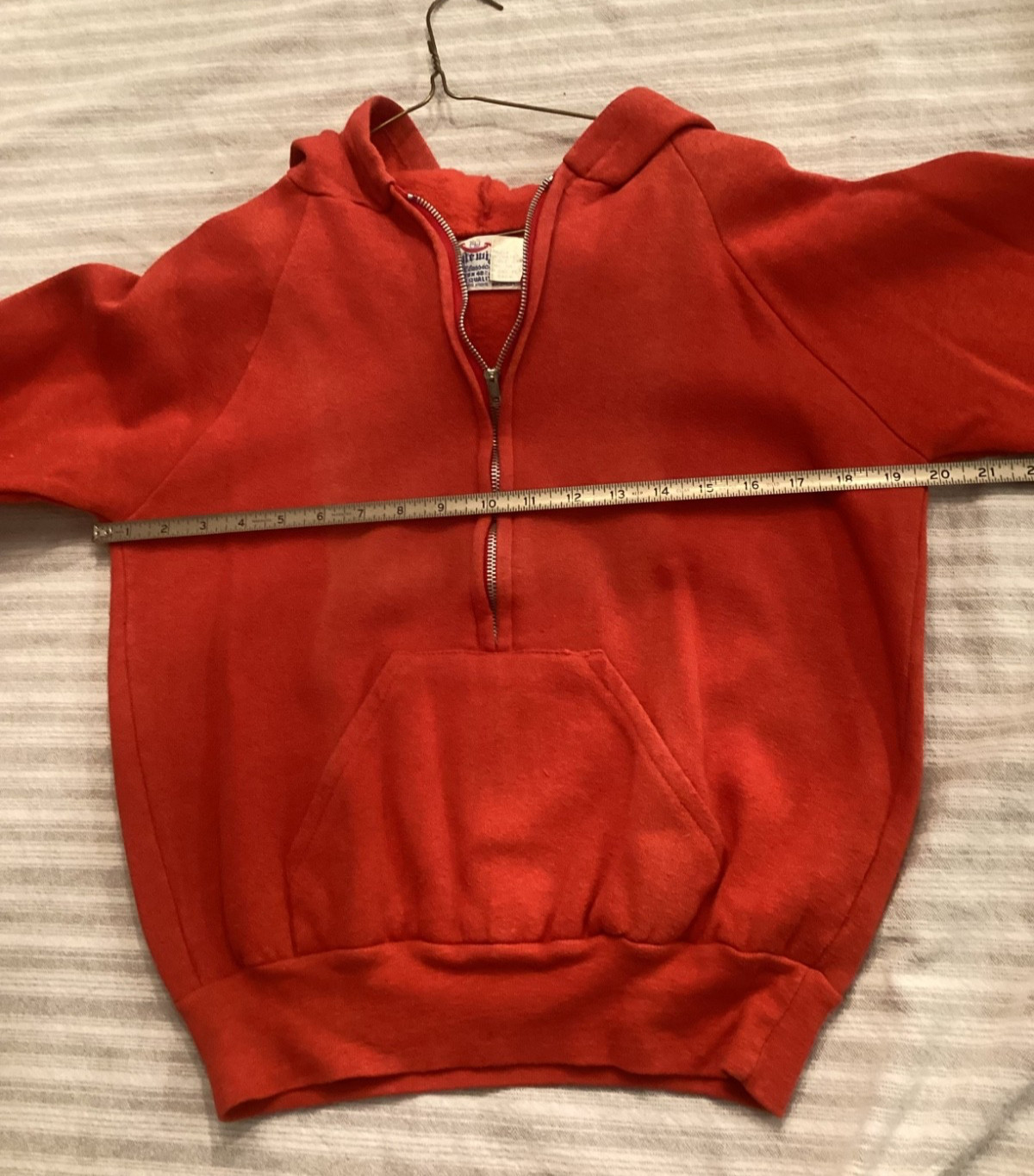 Rare VINTAGE 60s 70s Hoodie Sweatshirt Quarter zip Red Youth Kids Medium