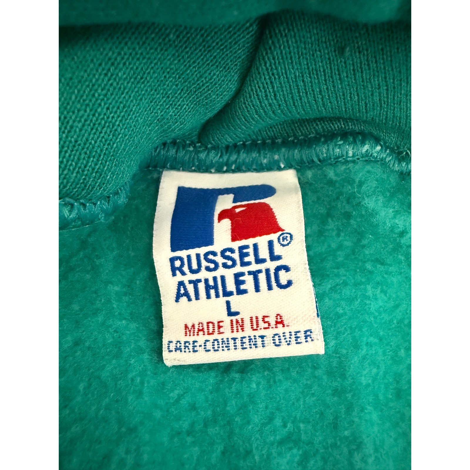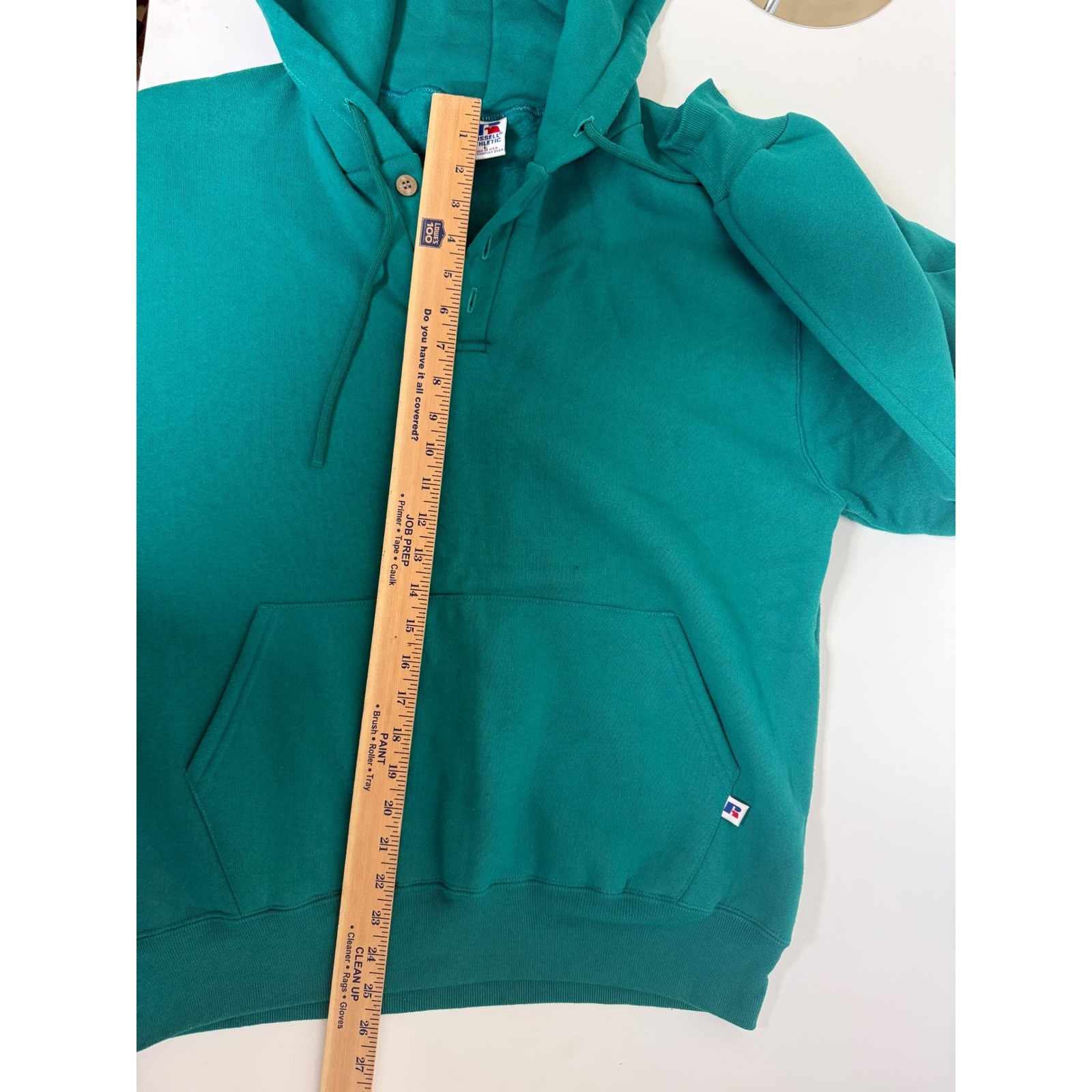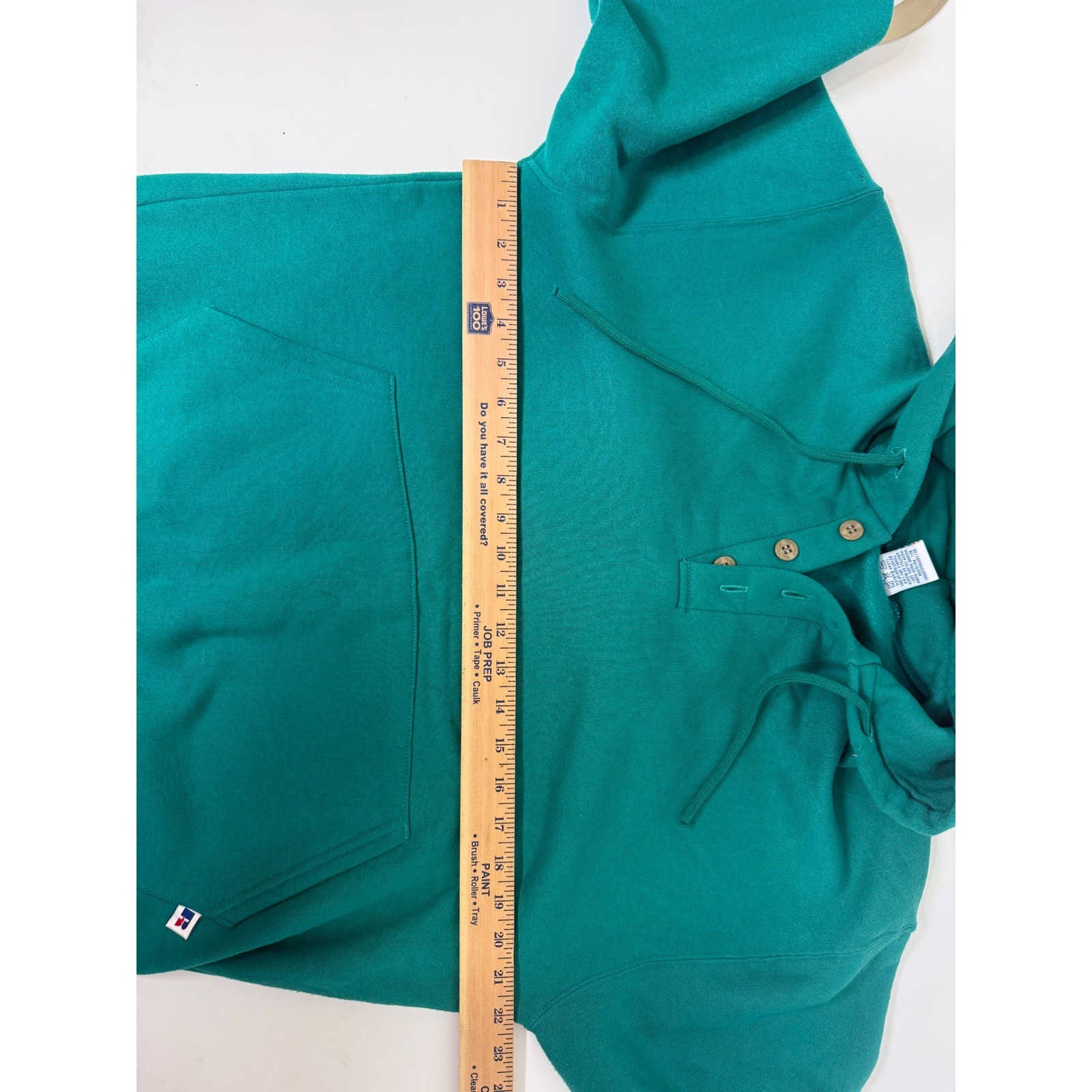 Russell Athletic Hoodie Men's Large Pullover Snap Henley USA Green Vintage 90s
