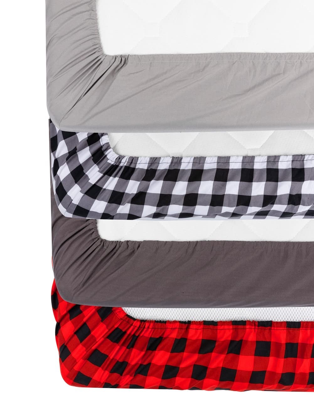 4 Pack Buffalo Check Plaid Neutral Unisex Fitted Baby Crib Sheets Set for Bab...