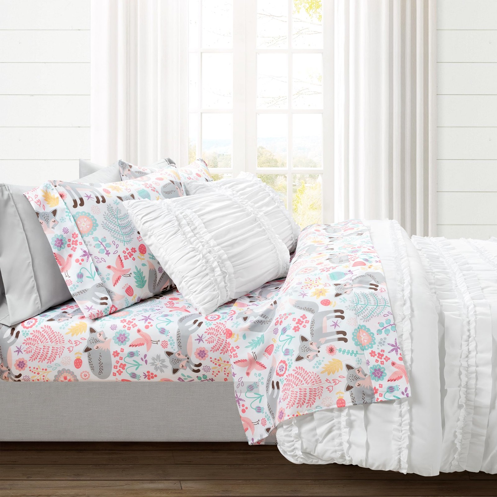 Pixie Fox Soft Sheet Set, 4 Piece Set, Twin, Gray Pink - Pink Twin Sheet Se...