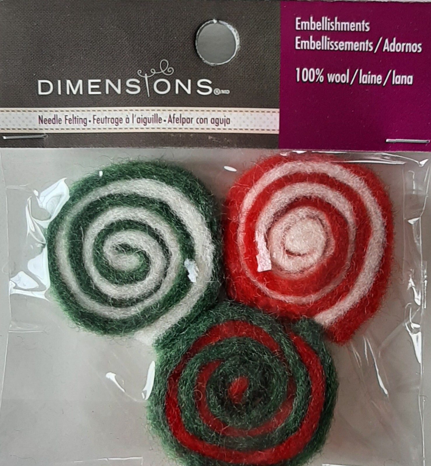 как выглядит Dimensions Needle Felting Kit 12pc Christmas Swirls 100 Wool Holiday Craft Set фото