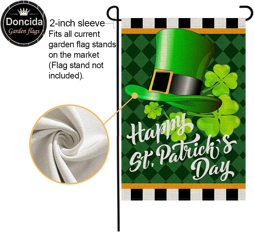 как выглядит Doncida Happy St Patricks Day Garden Flag 12x18 Inch Burlap Double Sided, Lawn B фото