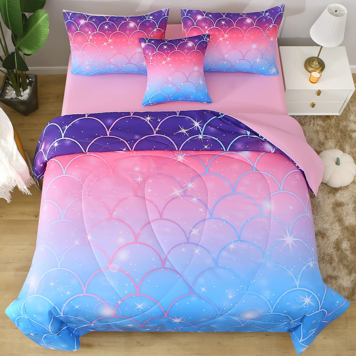 Twin Size Mermaid Comforter Set, 6 Piece Bed in A Bag 3D Colorful Bedding Set...