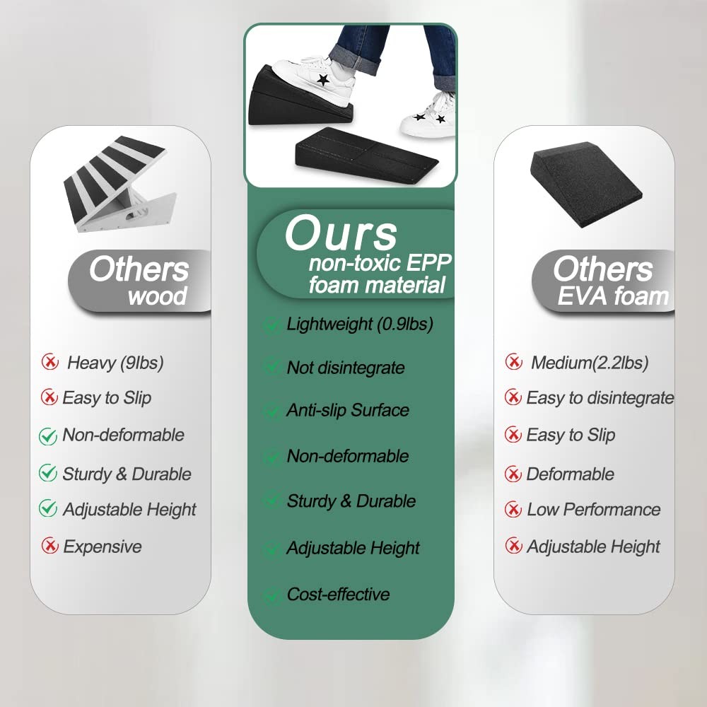 Slant Board Squat Wedge for Calf Stretching 3 Pcs 12 x 6.3 Foot Stretcher B...