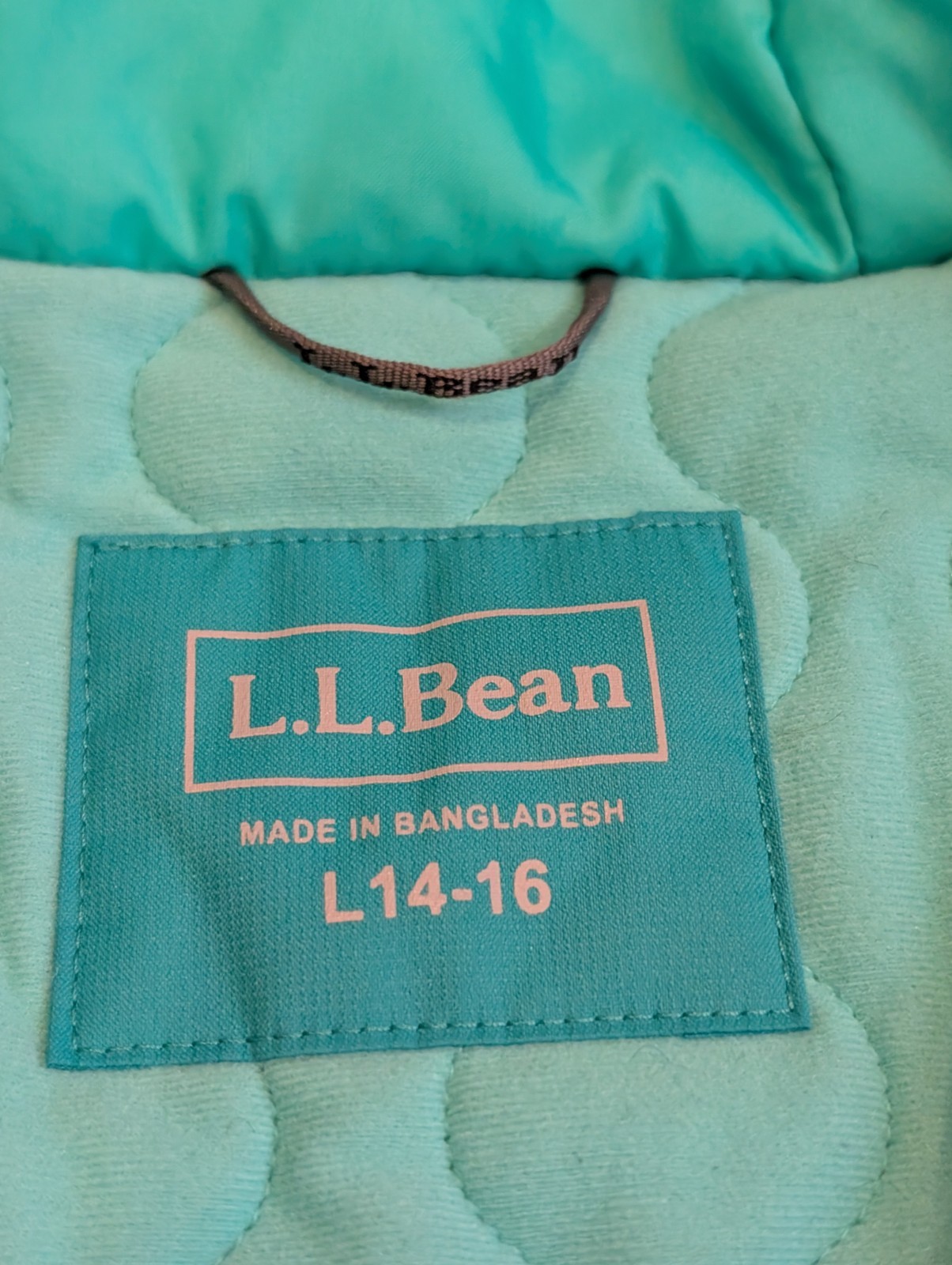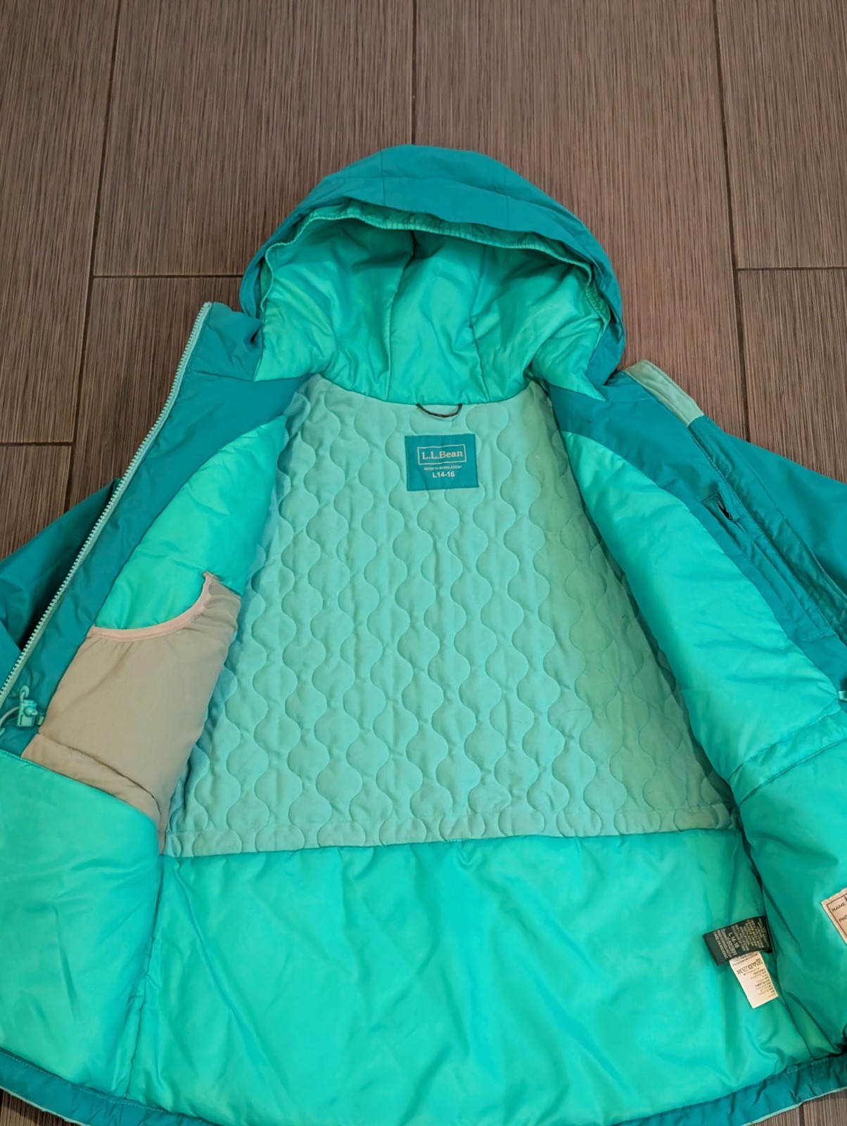 как выглядит L.L. Bean Kids Colorblock Hooded Jacket Teal Light Blue L 14-16 Full Zip фото