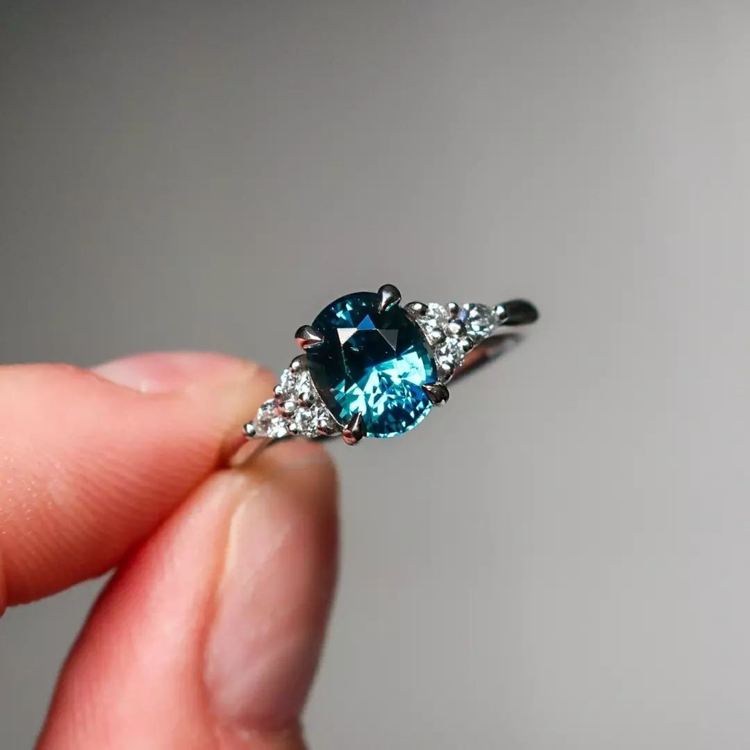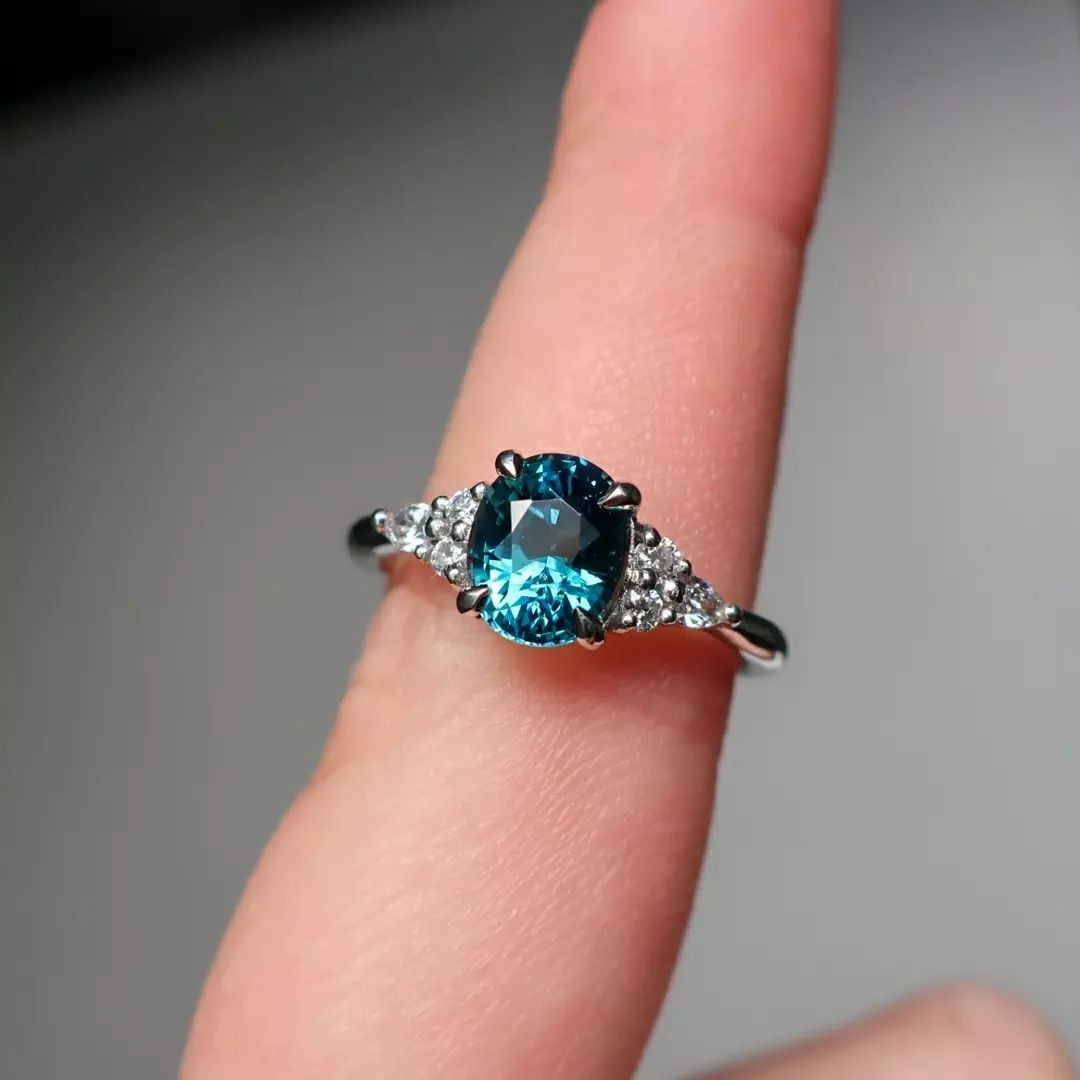 как выглядит Teal Sapphire Ring 925 Sterling Silver Oval Cut Sapphire Ring Gift For Her. фото
