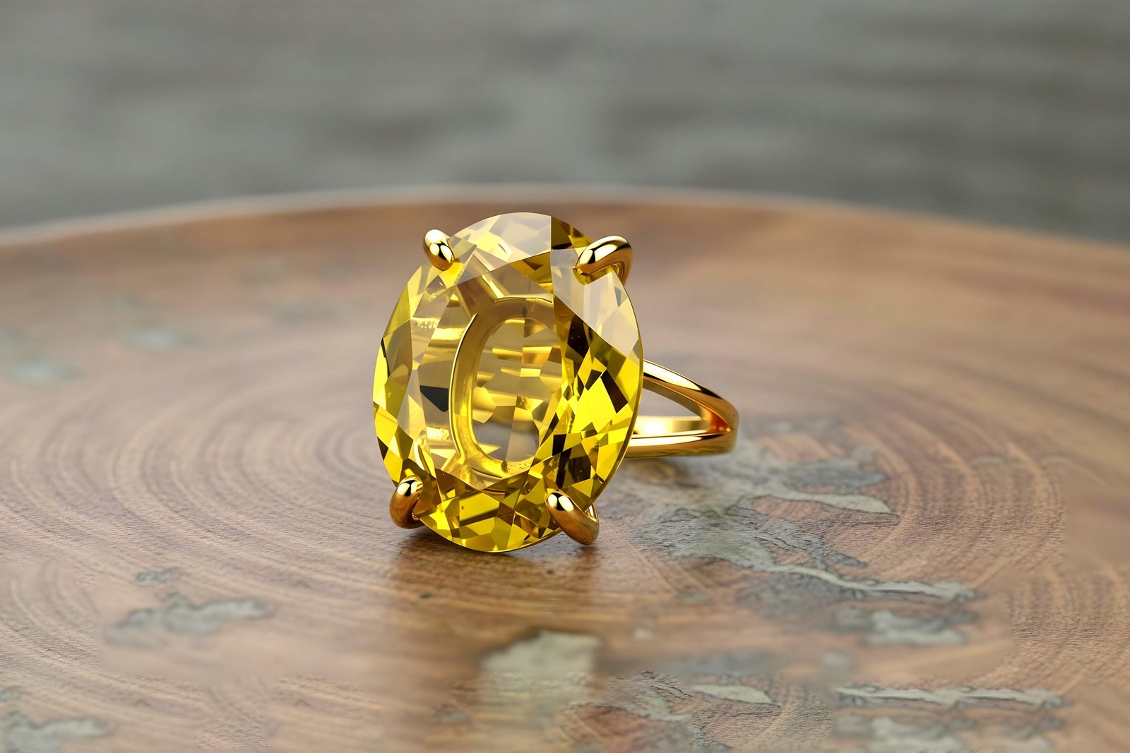 Lemon Quartz Ring Anemone Oval Cut Yellow Stone 14k Gold Filled