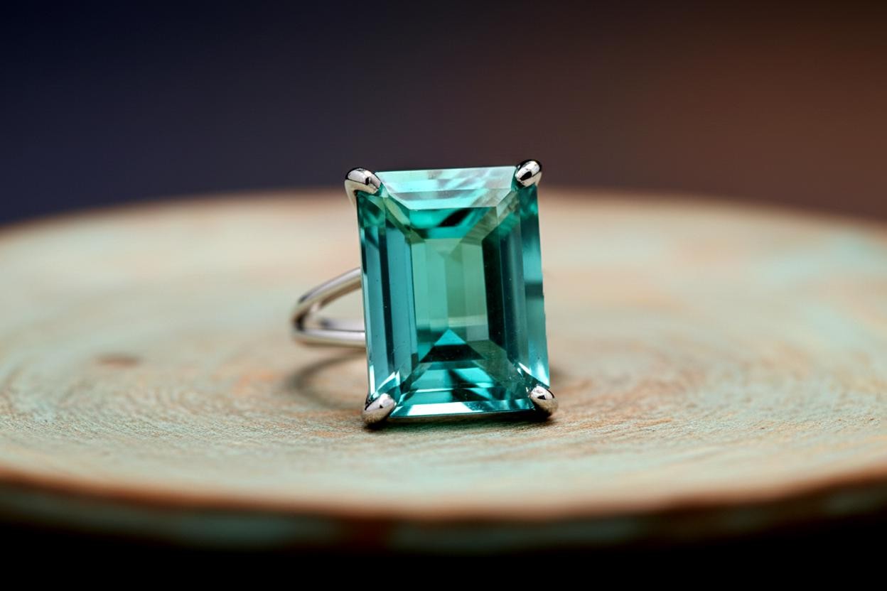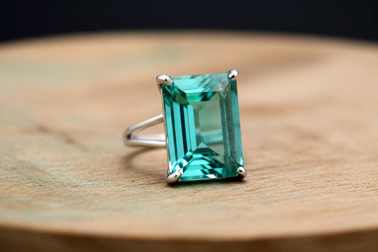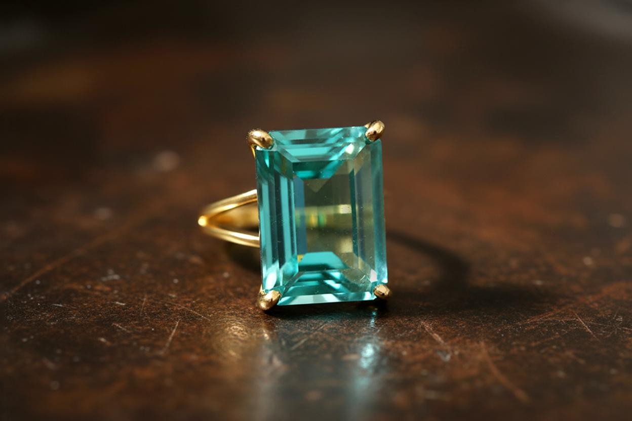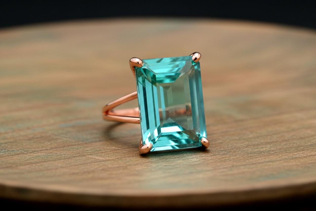 как выглядит Blue Tourmaline Ring Handmade Emerald Cut Rectangle 14k Gold Filled фото