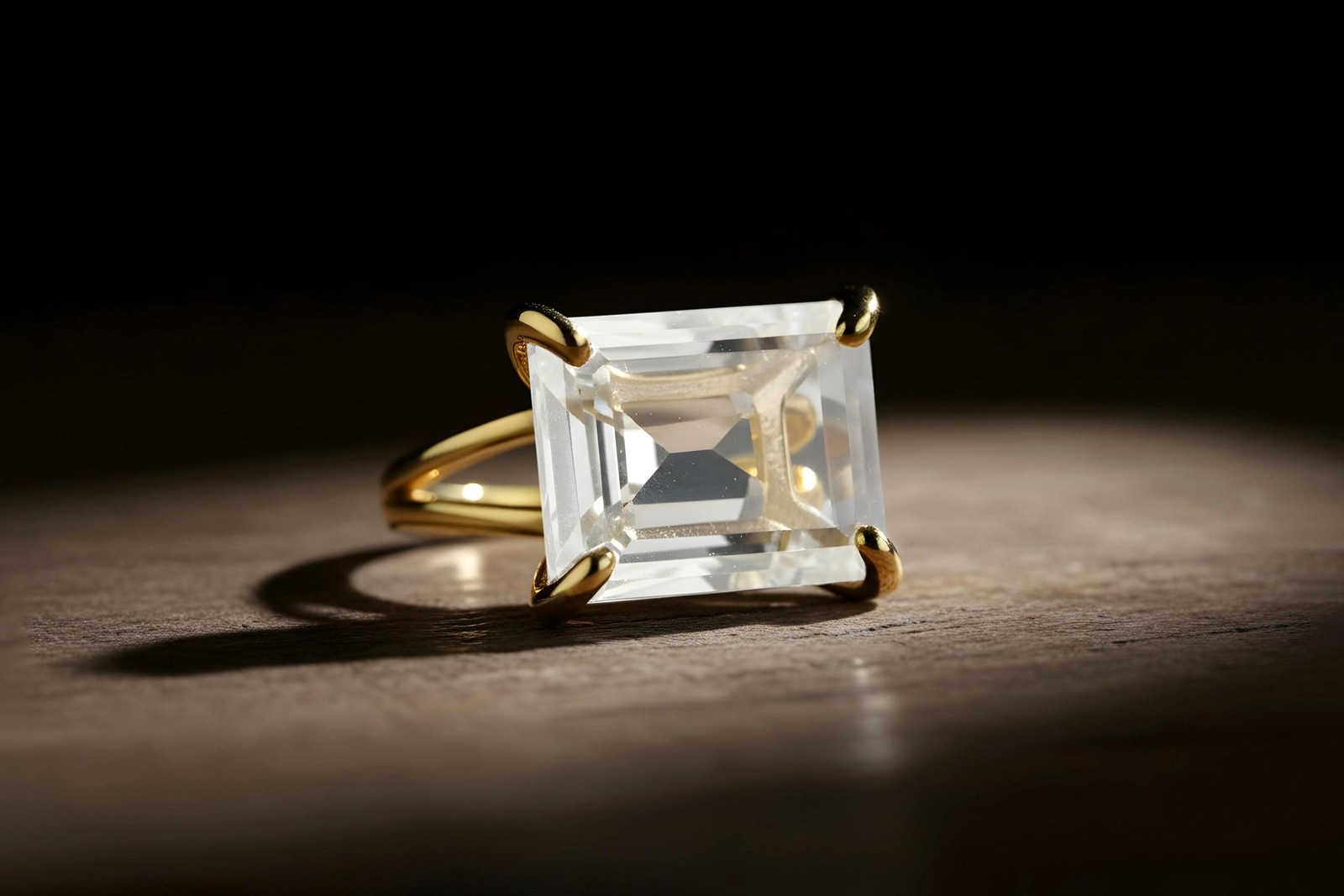 как выглядит Clear Quartz Ring Anemone Gold Filled Rectangle Cut Faceted Gemstone фото