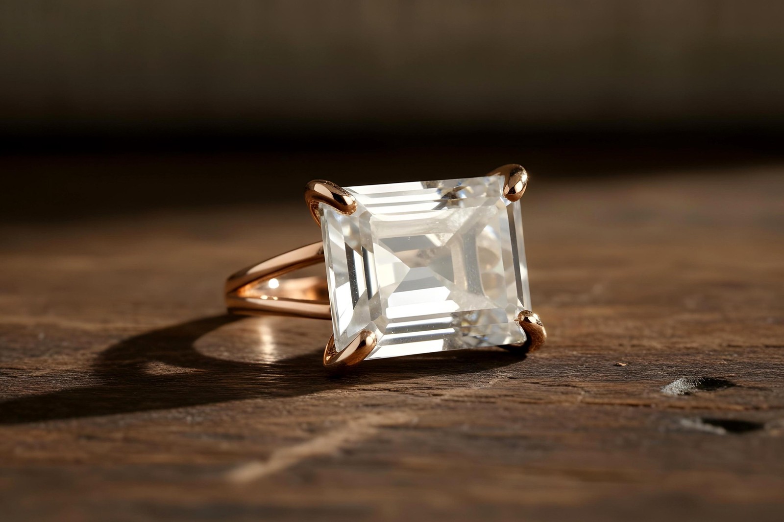 Clear Quartz Ring Anemone Gold Filled Rectangle Cut Faceted Gemstone