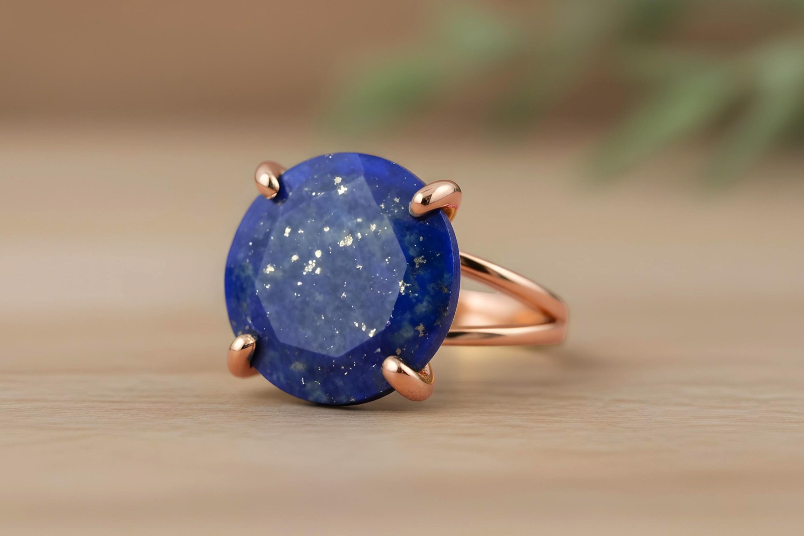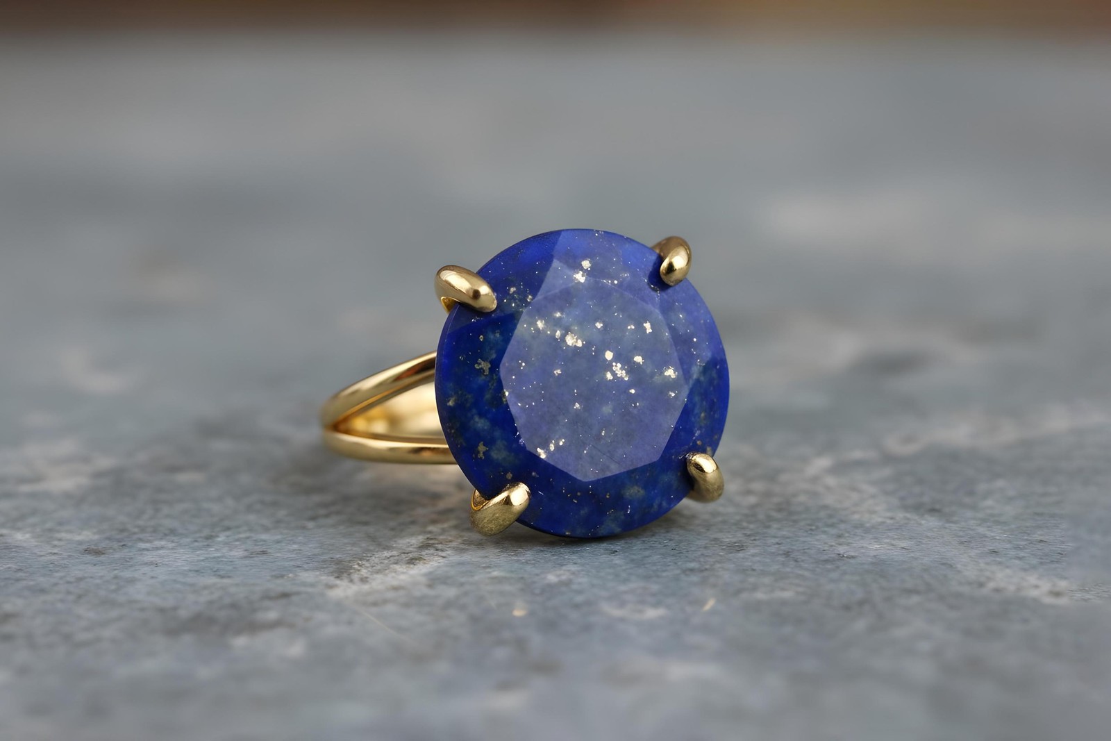 Lapis Lazuli Ring Anemone Jewelry Handmade Gold Filled Round Cut Gemstone
