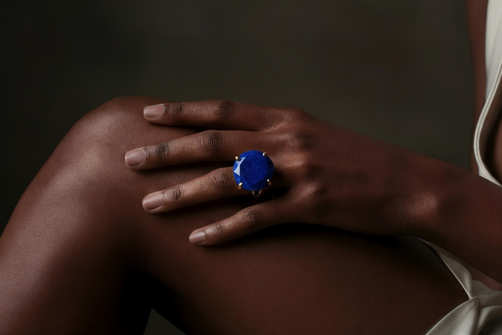 как выглядит Lapis Lazuli Ring Anemone Jewelry Handmade Gold Filled Round Cut Gemstone фото