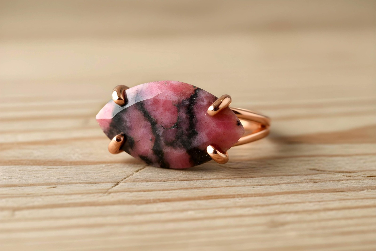 как выглядит Rhodonite Ring Anemone Jewelry 14k Gold Filled Marquise Cut Pink Gemstone фото