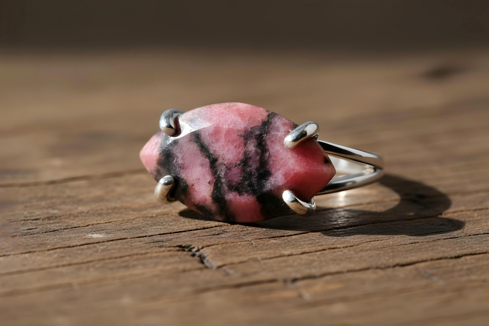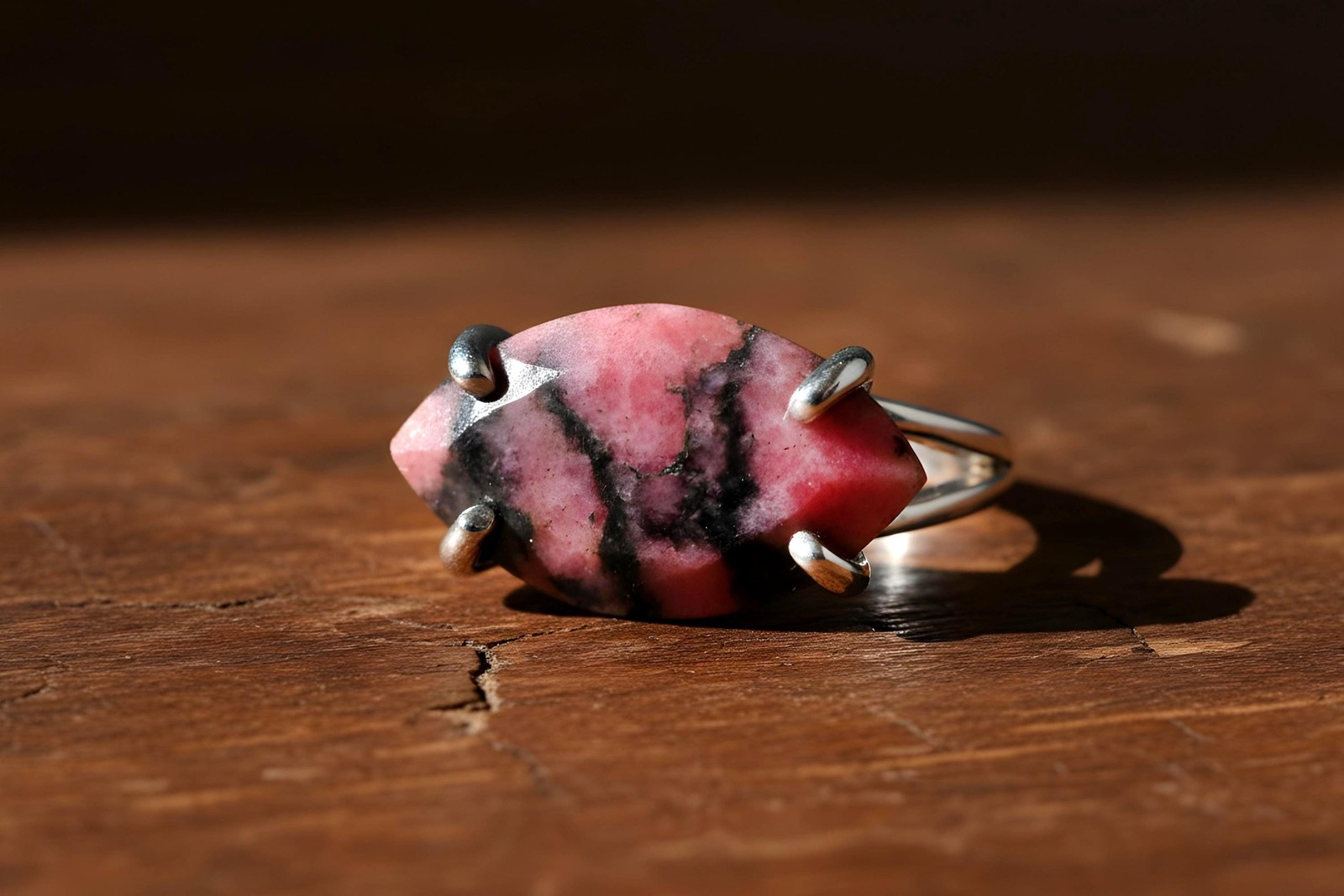 Rhodonite Ring Anemone Jewelry 14k Gold Filled Marquise Cut Pink Gemstone