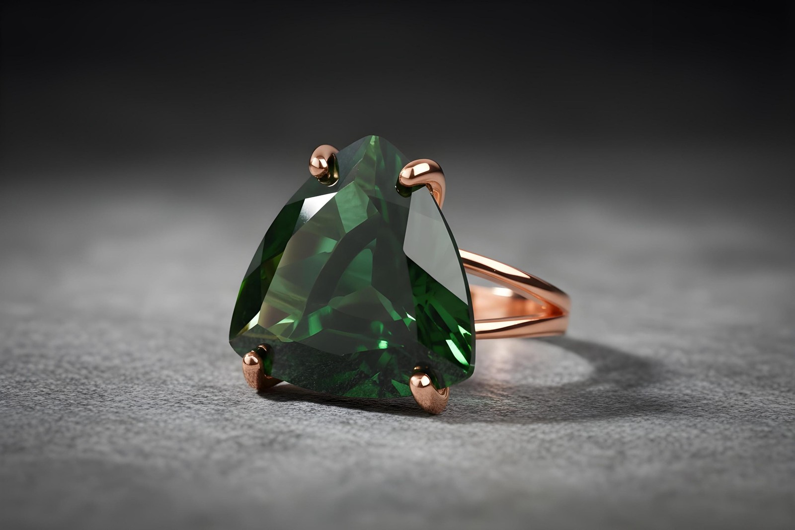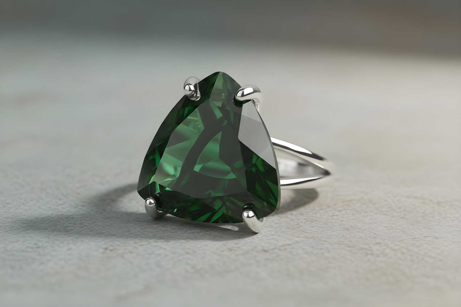 Trillion Cut Emerald Ring Anemone Jewelry 14k Gold May Birthstone Gift