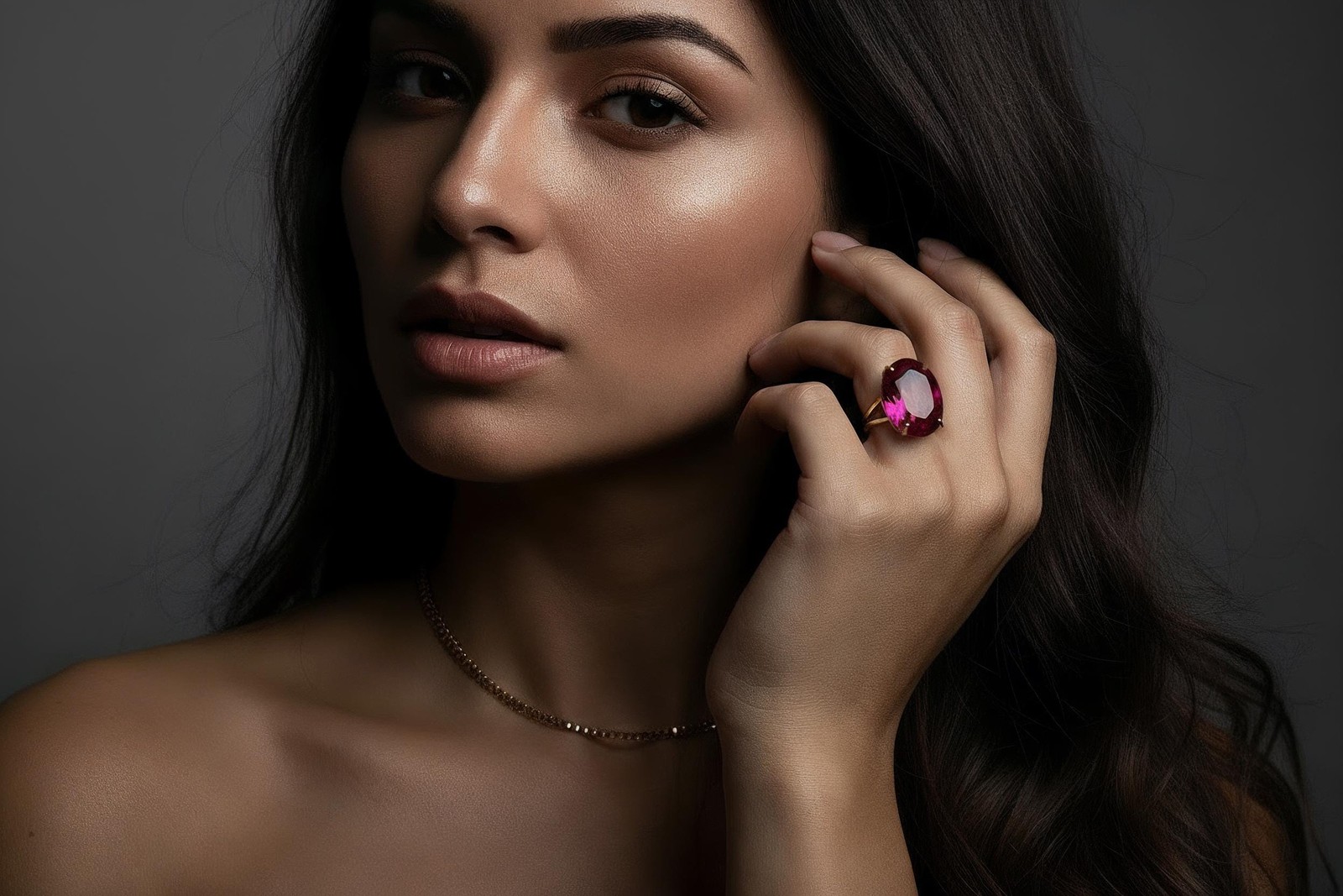 Pink Tourmaline Ring Anemone Oval Cut Gold Vermeil Statement Jewelry