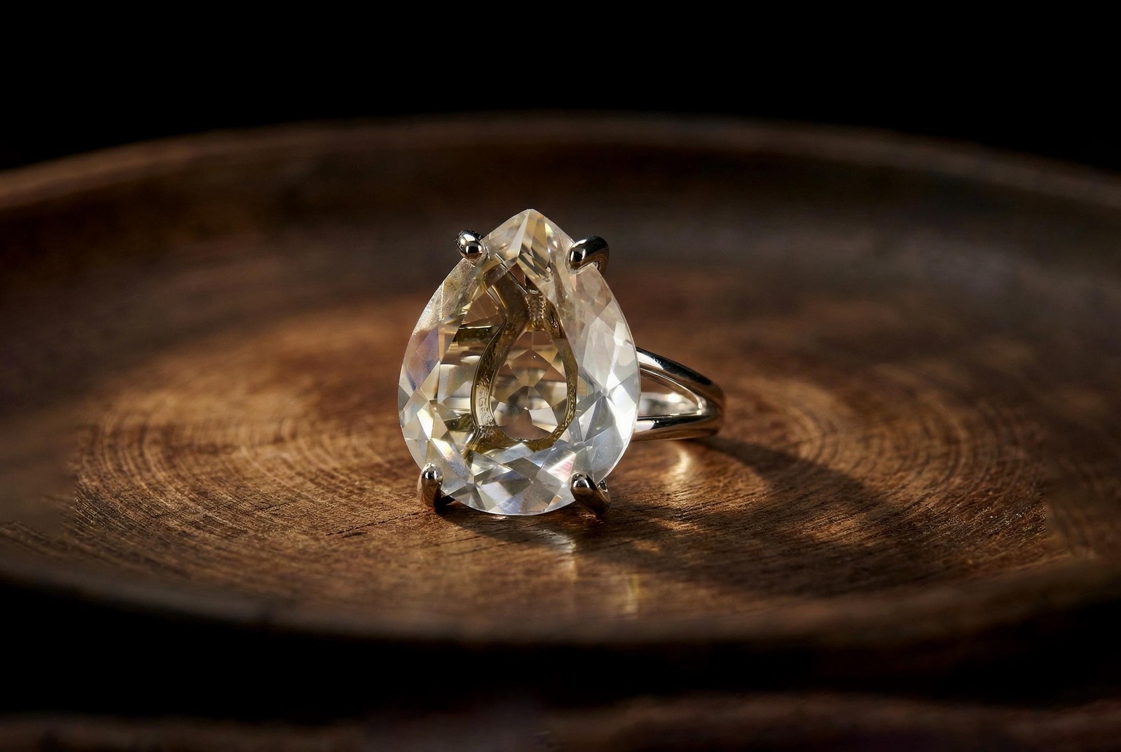 Crystal Quartz Ring Anemone Pear Cut 14k Gold Filled Split Band Wedding