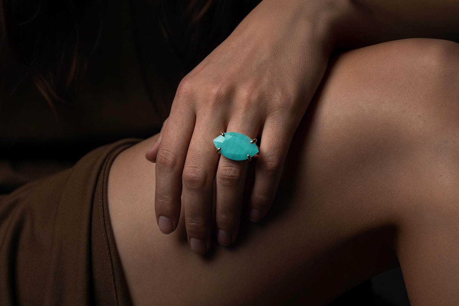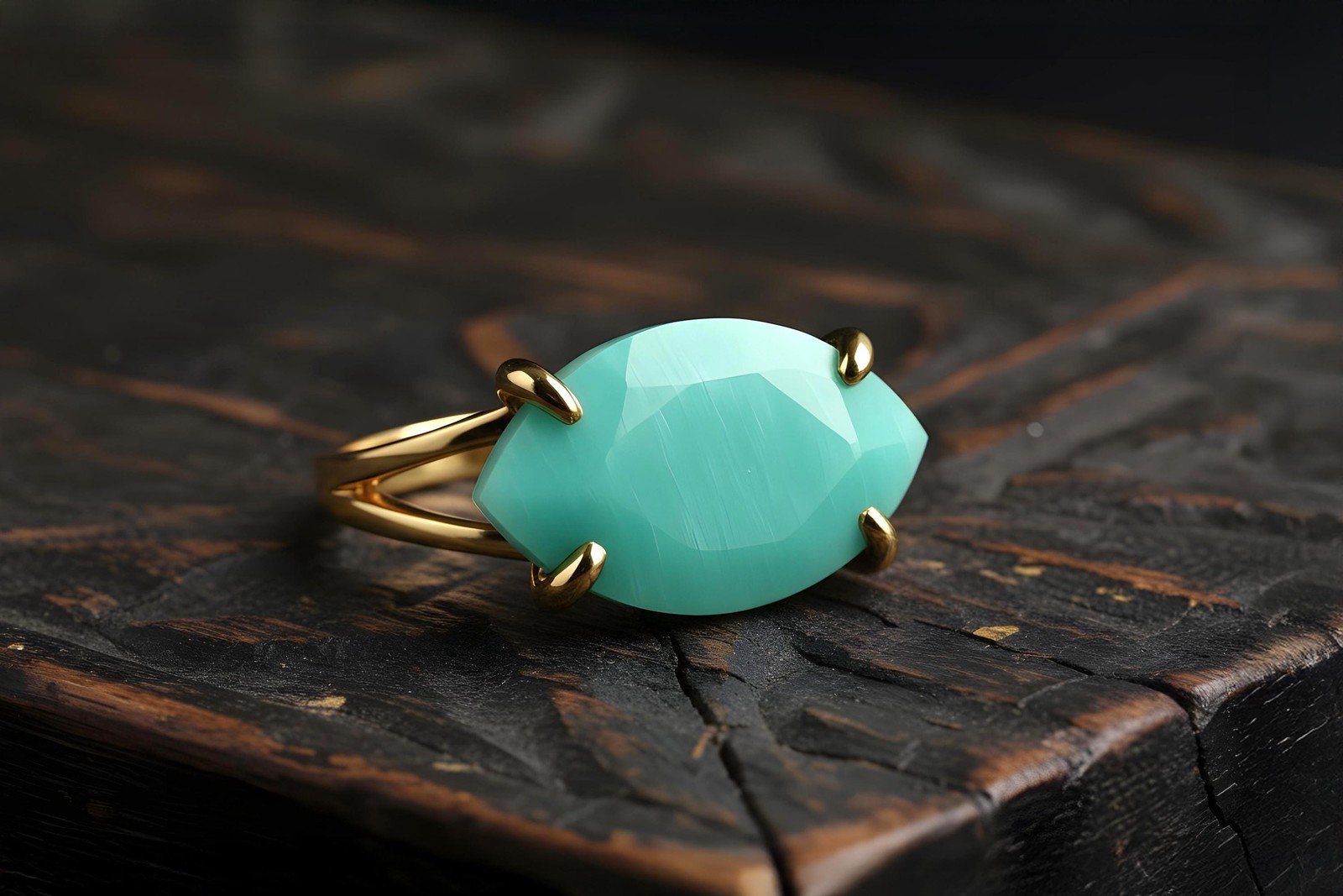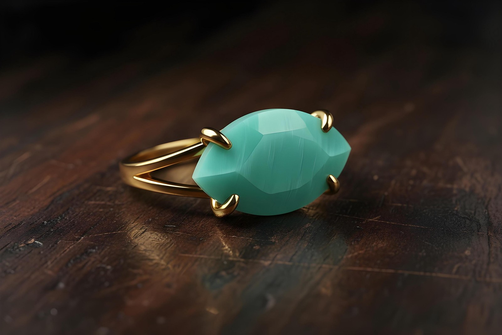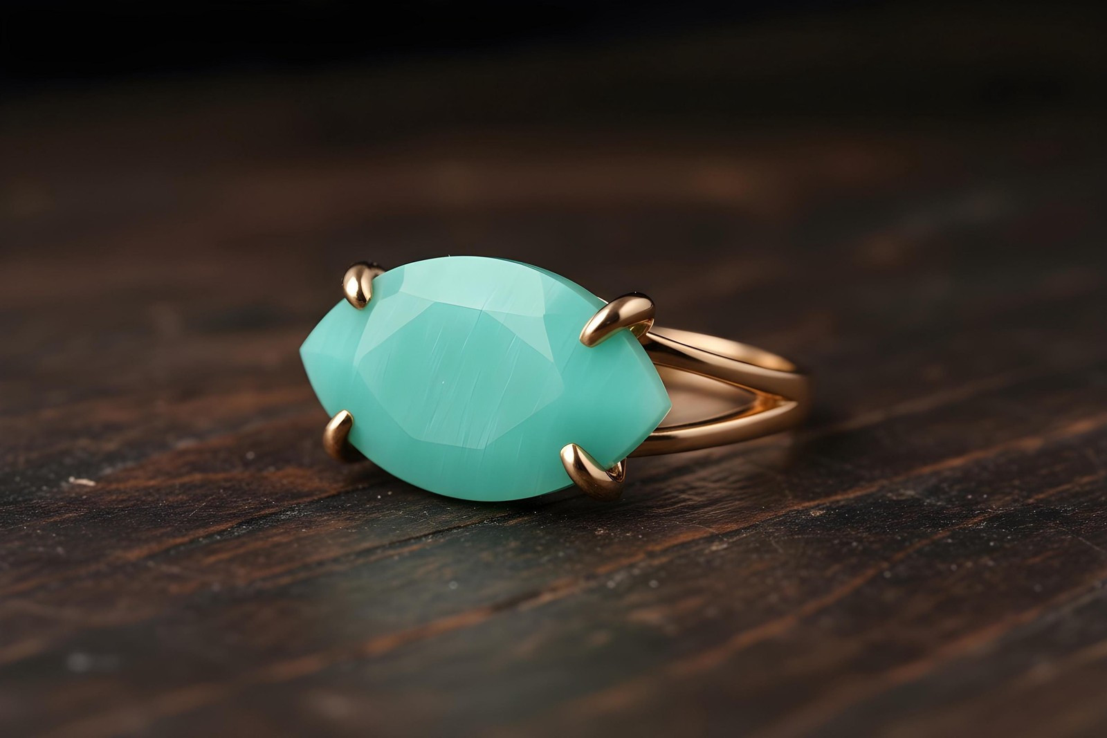 Amazonite Ring Anemone Jewelry Marquise Cut 14k Gold Prong Setting