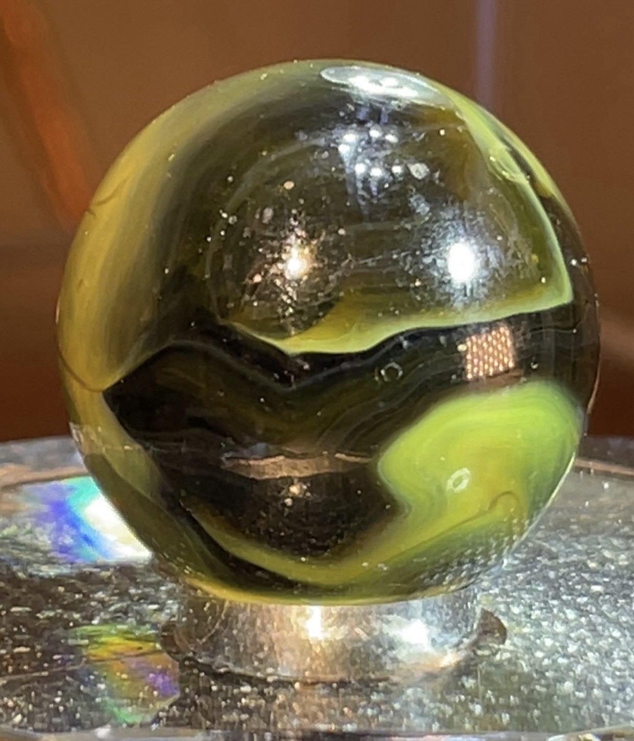 как выглядит Vintage Christensen Agate Cats Eye Swirl Shooter Marble фото
