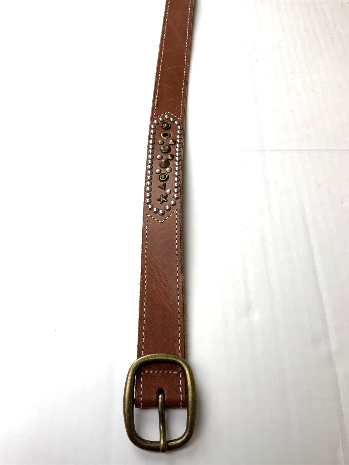 Gap Women s Medium Belt Brown Cow Leather Studded Gold Silver Casual Cowgirl