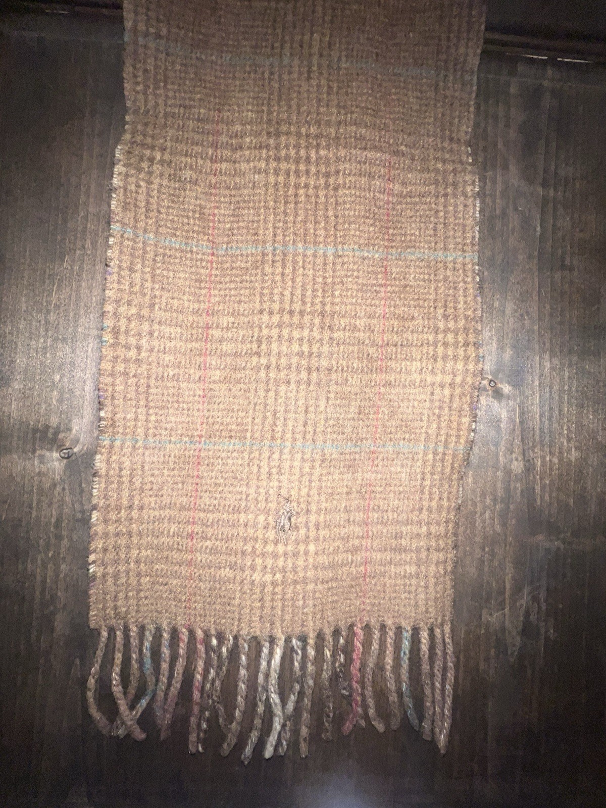 Polo Ralph Lauren Plaid Lambswool Scarf Brown Multicolor Made In Italy