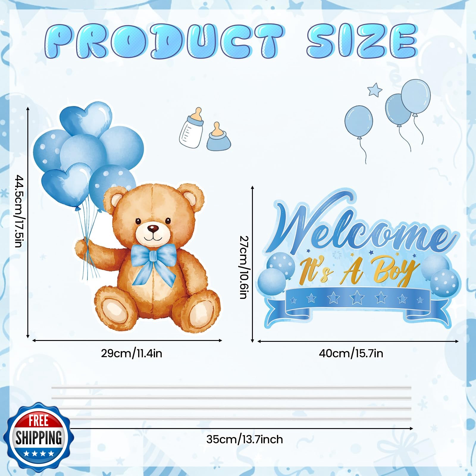 2Pcs Baby Shower Yard Sign with Stake Gender Reveal Yard Sign Blue Bear Lawn ...