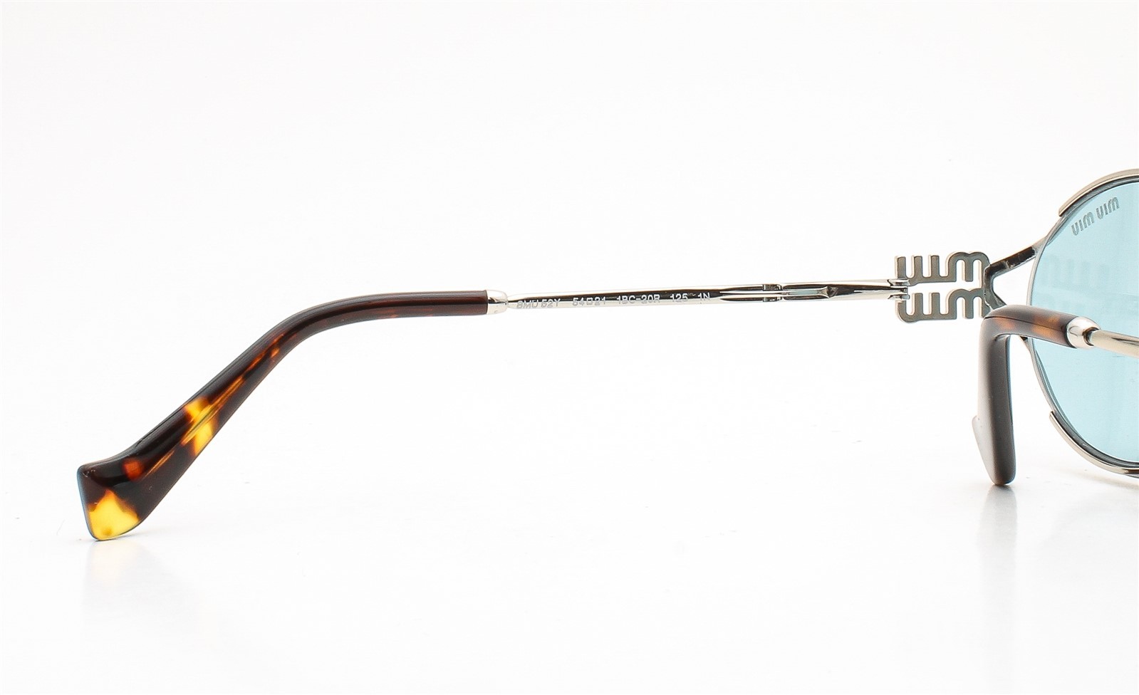 как выглядит Miu Miu Sunglasses SMU 52Y 1BC-20R Shiny Silver Metal Light Blue Tint with Case фото