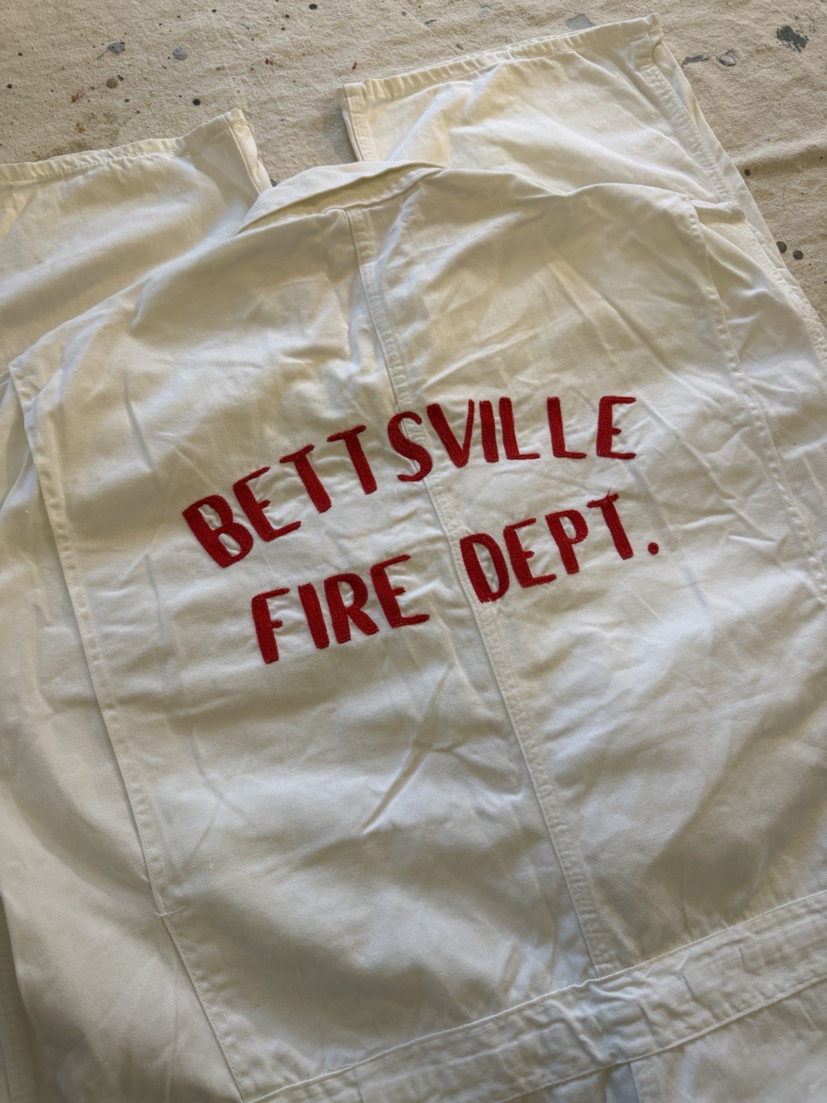 как выглядит Vtg 50s Sanforized HBT Coveralls Chainstitched Bettsville Fire Dept. Size 46 фото