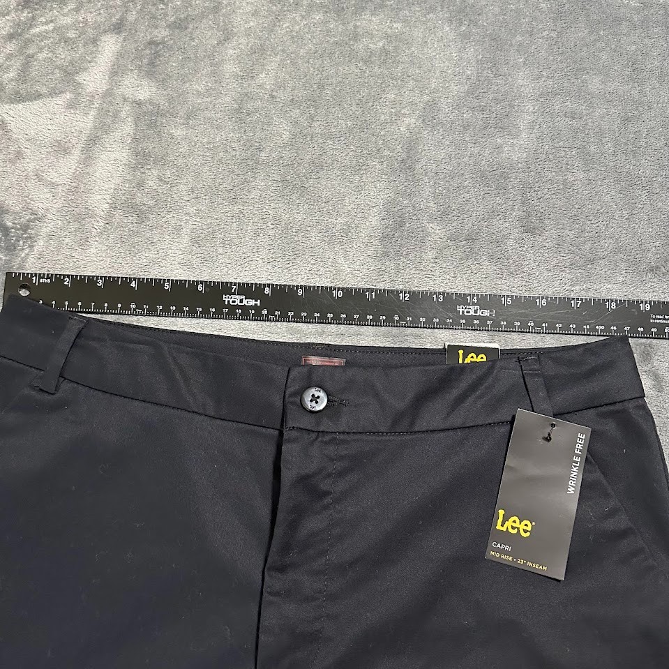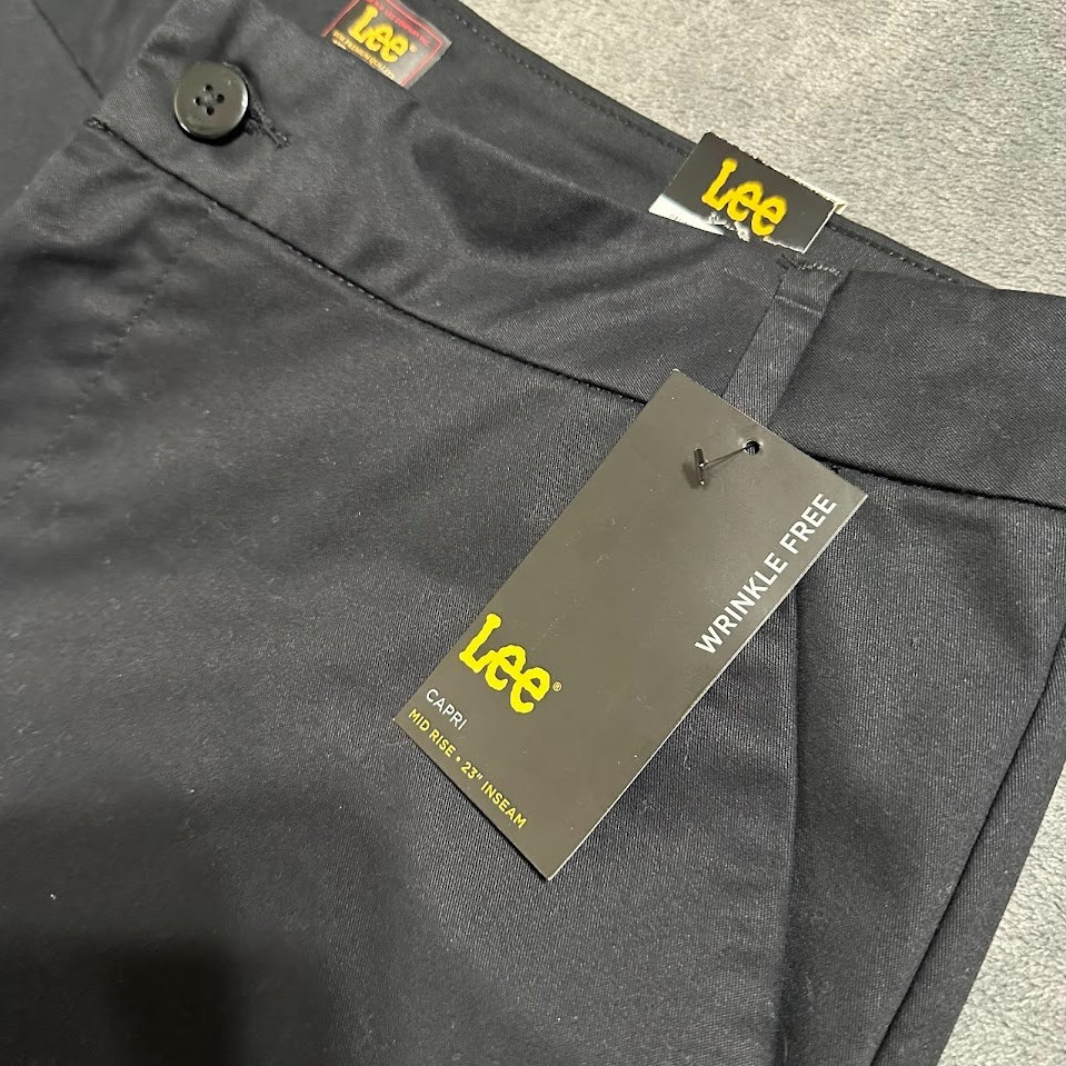 NWT Lee Relaxed Fit Straight Leg Mid Rise Pants Womens 16 Black Wrinkle Free
