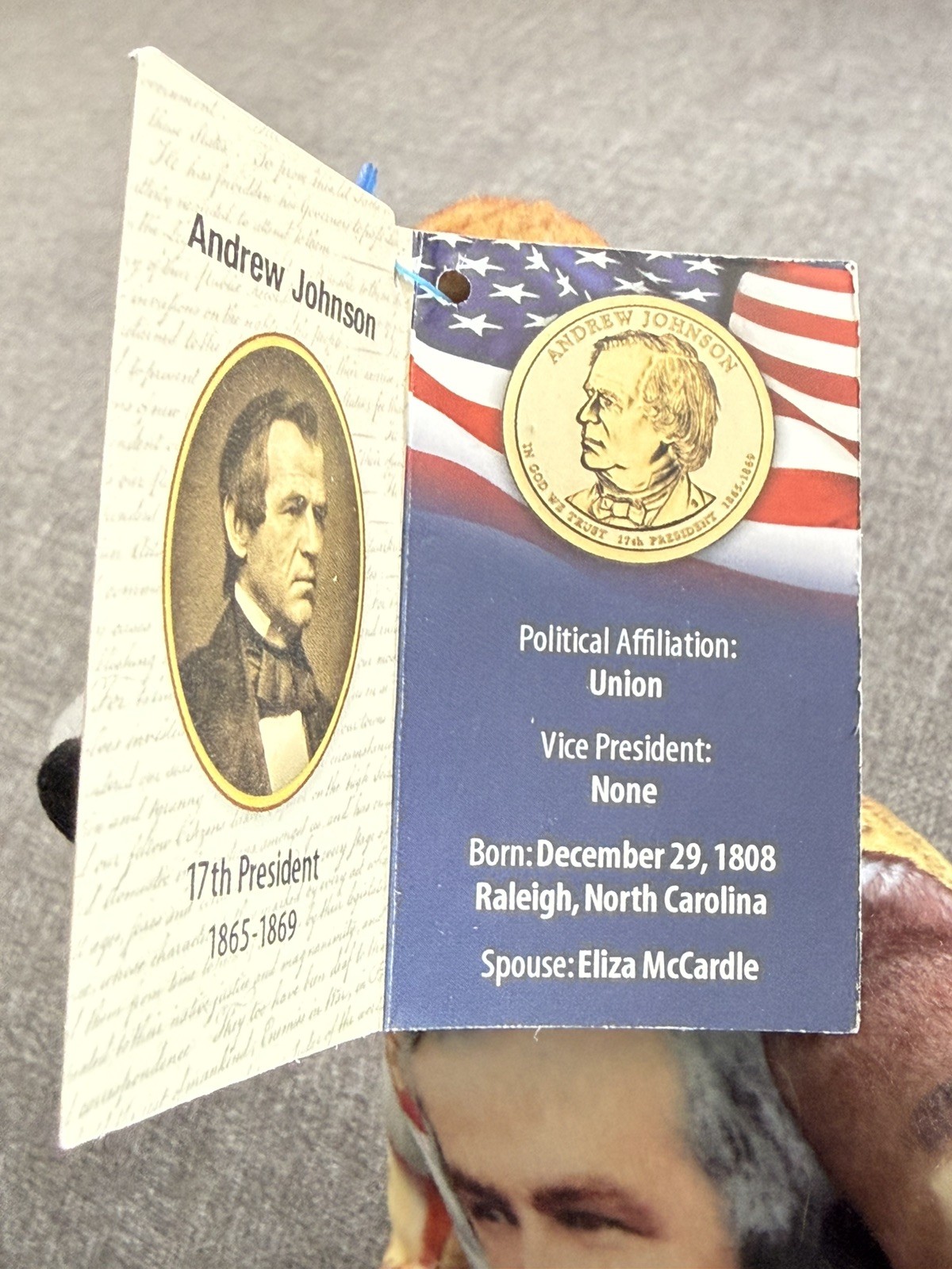 как выглядит Limited Treasures Presidential Coin Bear - 17th President Johnson 1865-1869 NWT фото
