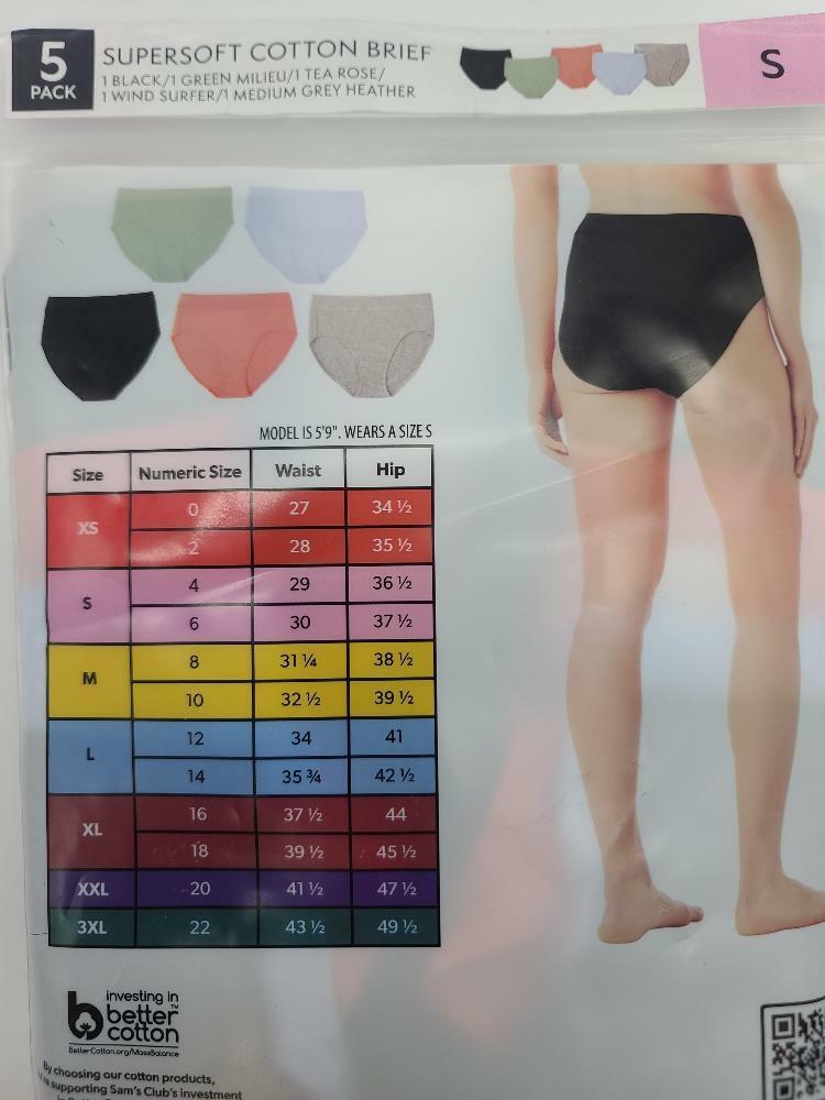 Member's Mark Women's 5-Pack Super-Soft Cotton Brief Panties Size Small