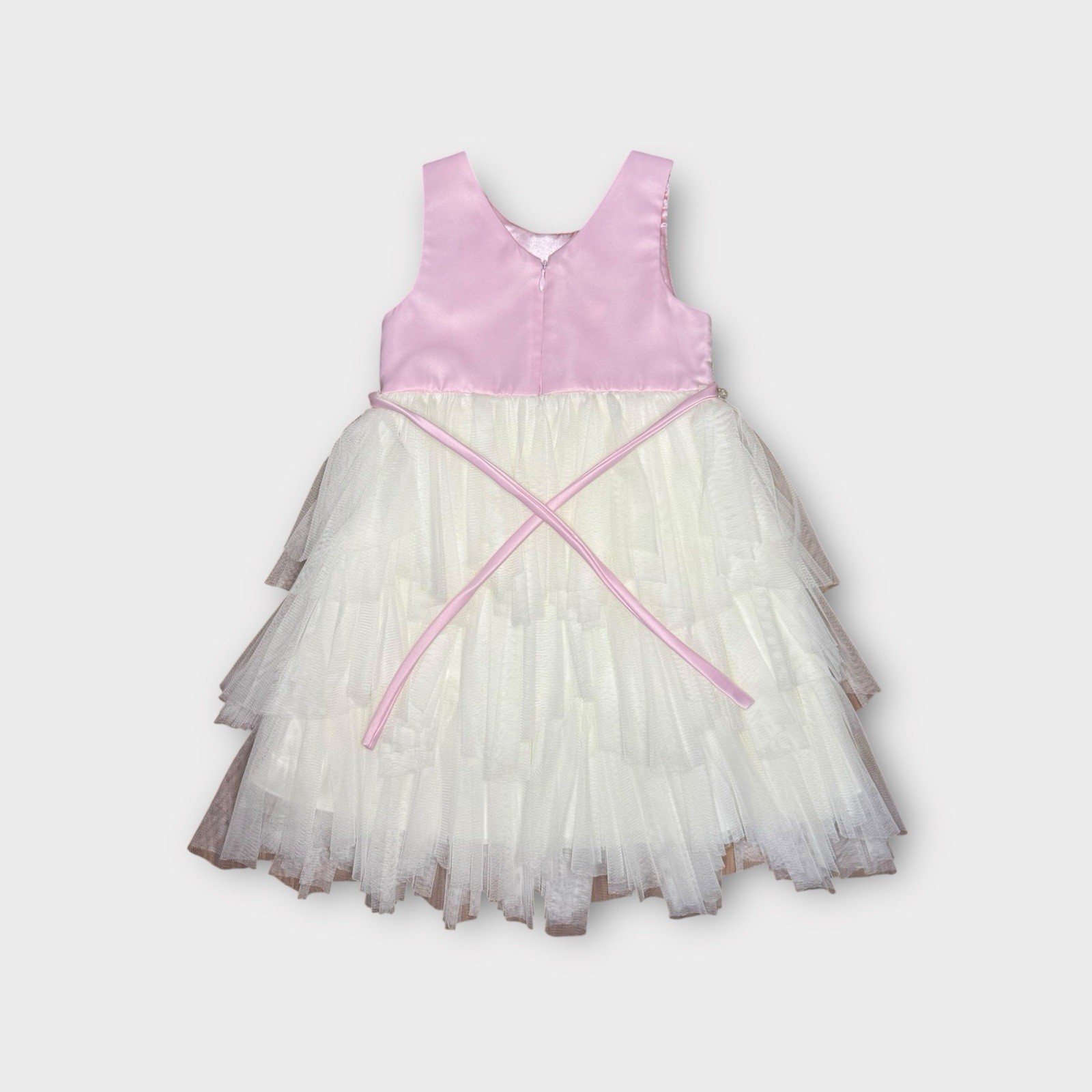 American Princess Pink Bodice Gold Jacquard White Tulle Tiered Dress NWOT