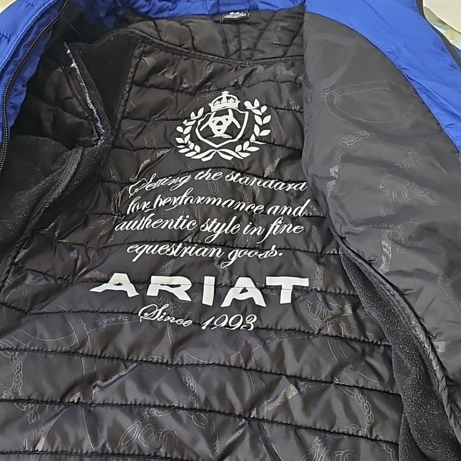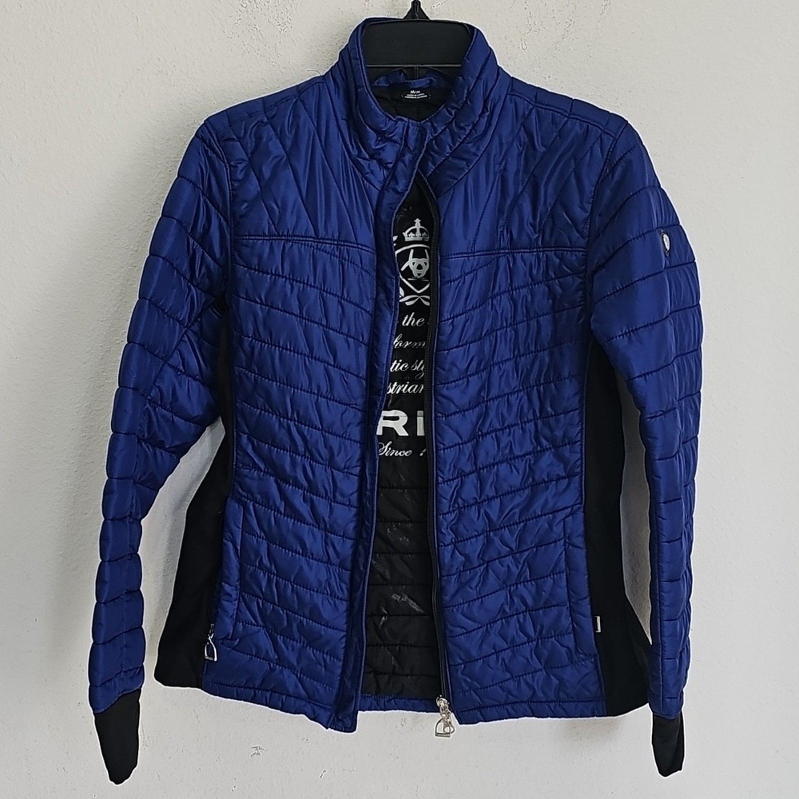 как выглядит Ariat Woman s Cobalt Blue/Black Puffer Jacket size M Zipper фото