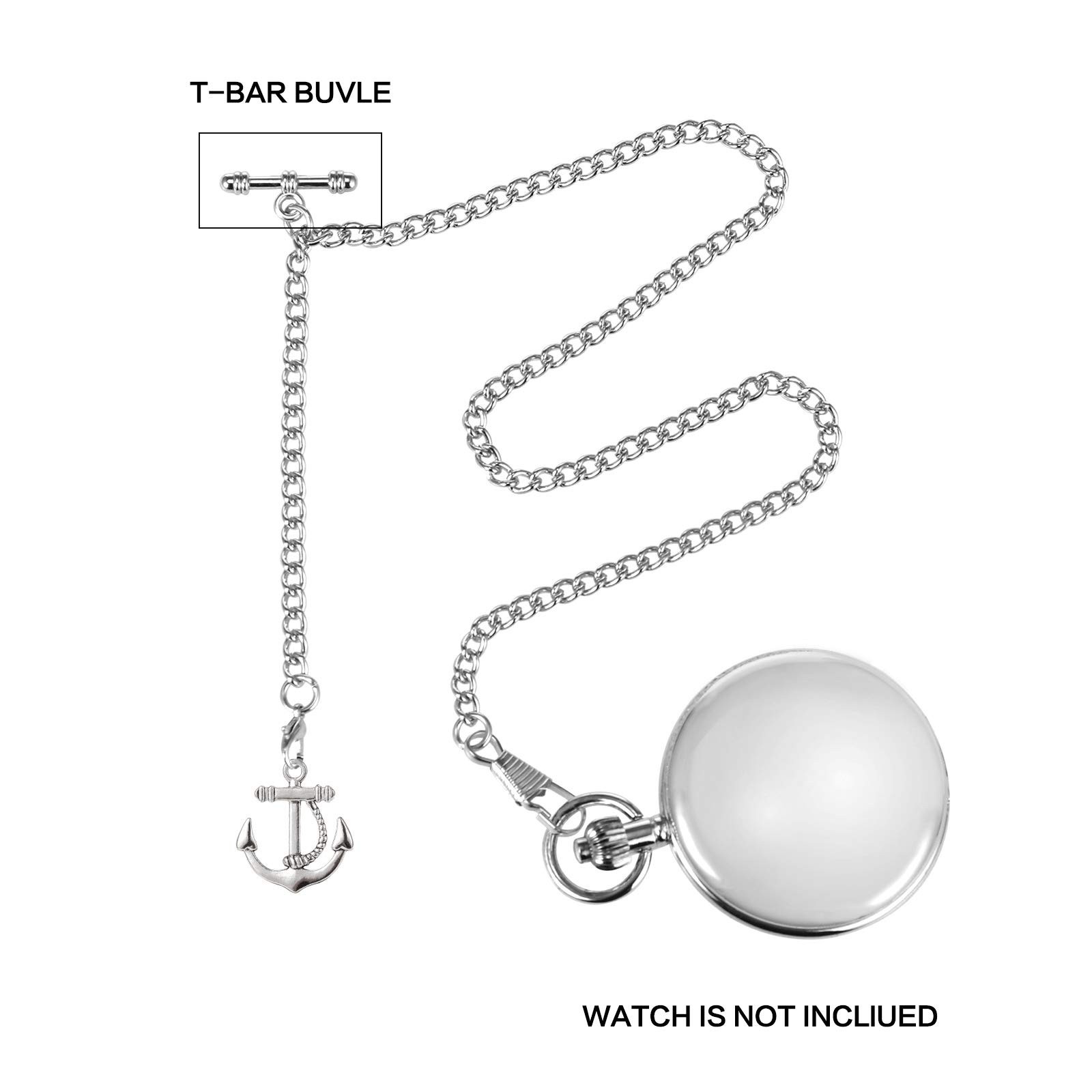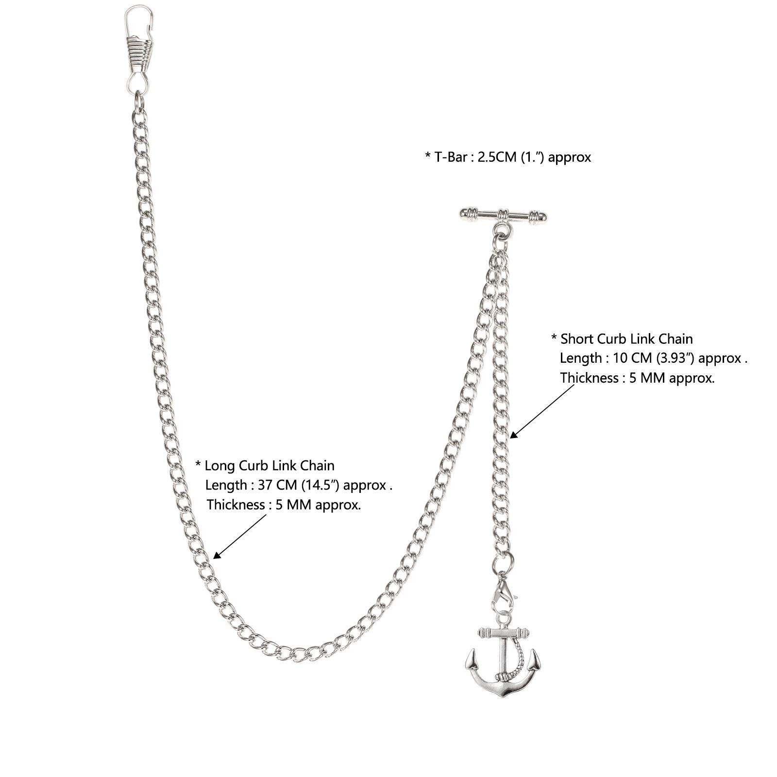 • TREEWETO Men's Albert Chain Pocket Watch Curb Link Key Chain 2 Hooks with Ant...