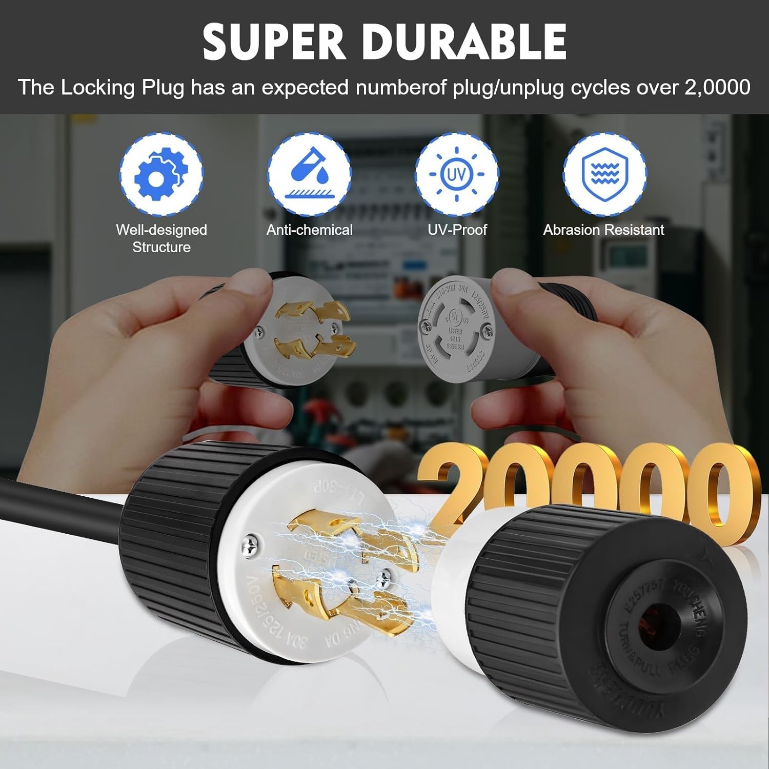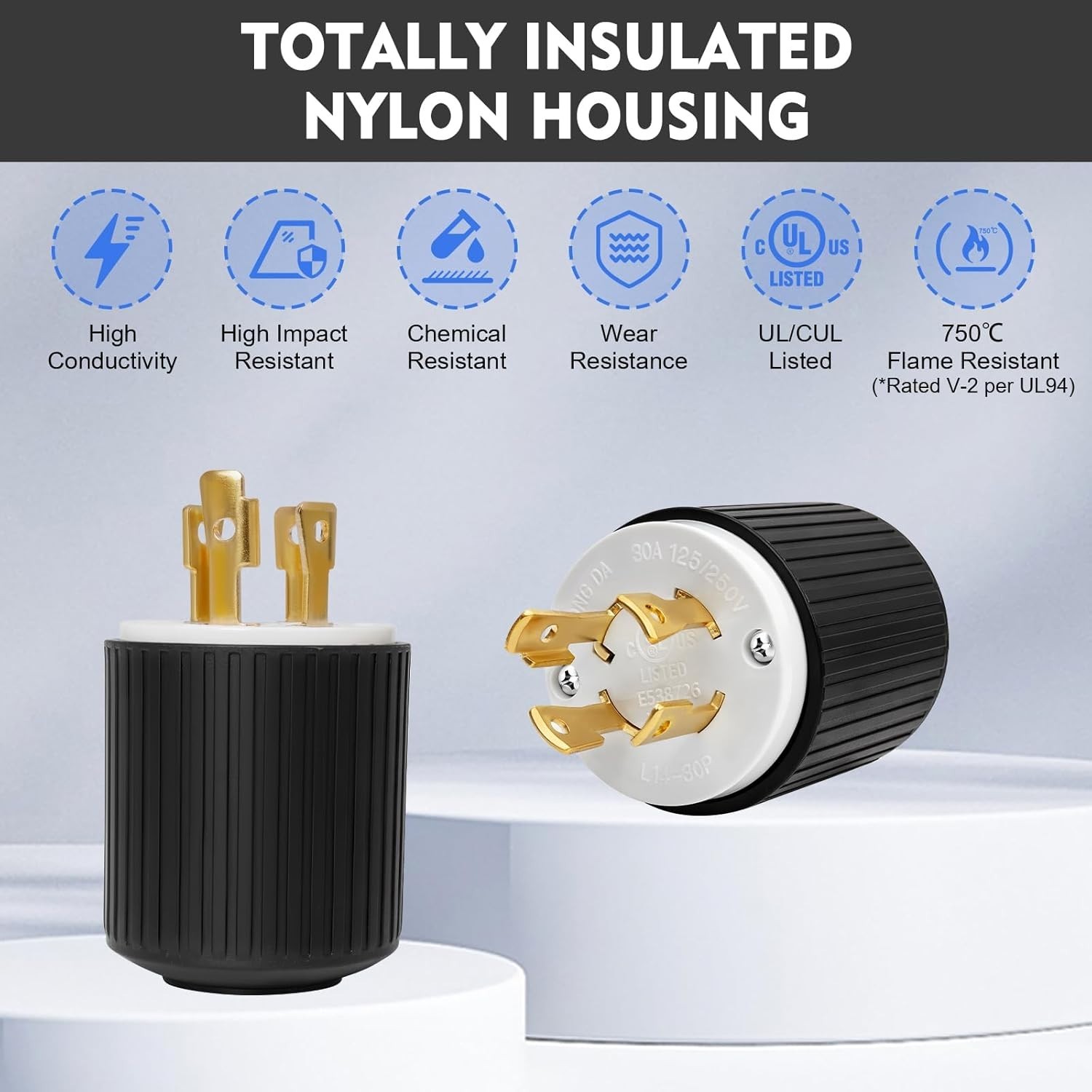 NEMA L14-30P Locking Plug 2 Pack 30A 125/250V Twist Lock Male Generator Connecto