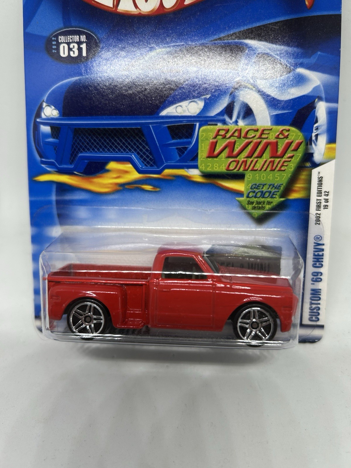 Hot Wheels 2002 FIRST EDITIONS CUSTOM '69 CHEVY PICK-UP RED 031 B3